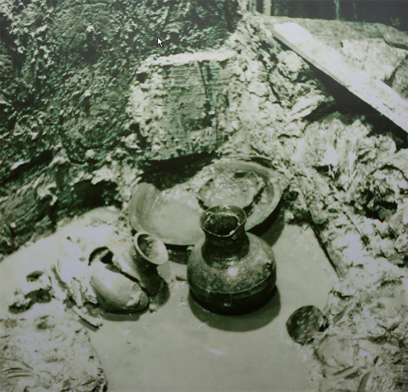 在广陵王墓的西厢“中府第五内户”厢内出土了一套完整的沐浴用具,有铜盆、铜壶、铜灯、漆勺、木瓢、木屐、浮石、漆浴凳等等。其中在两件铜灯的灯盘壁外沿分别刻有“尚浴名甲九”、“尚浴名甲四”各五字,在黑漆勺的底部用朱漆书“尚浴”二字。这些题字的物品为我们提出明示:这些器皿和沐浴有关。“尚浴”是宫廷中专门管理浴具的专职小官吏,这一套器具应该是专事沐浴的器皿,那“中府第五内户”就应该是沐浴间,而且是扬州沐浴史上最早的私人专用洗澡间。沐浴间紧靠主人的起居室,从一定程度上反映了古代扬州人讲究清洁、嗜好沐浴,追求隐秘、安静、周到、舒适的沐浴环境。一套完整的沐浴用具同时出土,这在全国出土的上万座汉墓中都是极为罕见的。