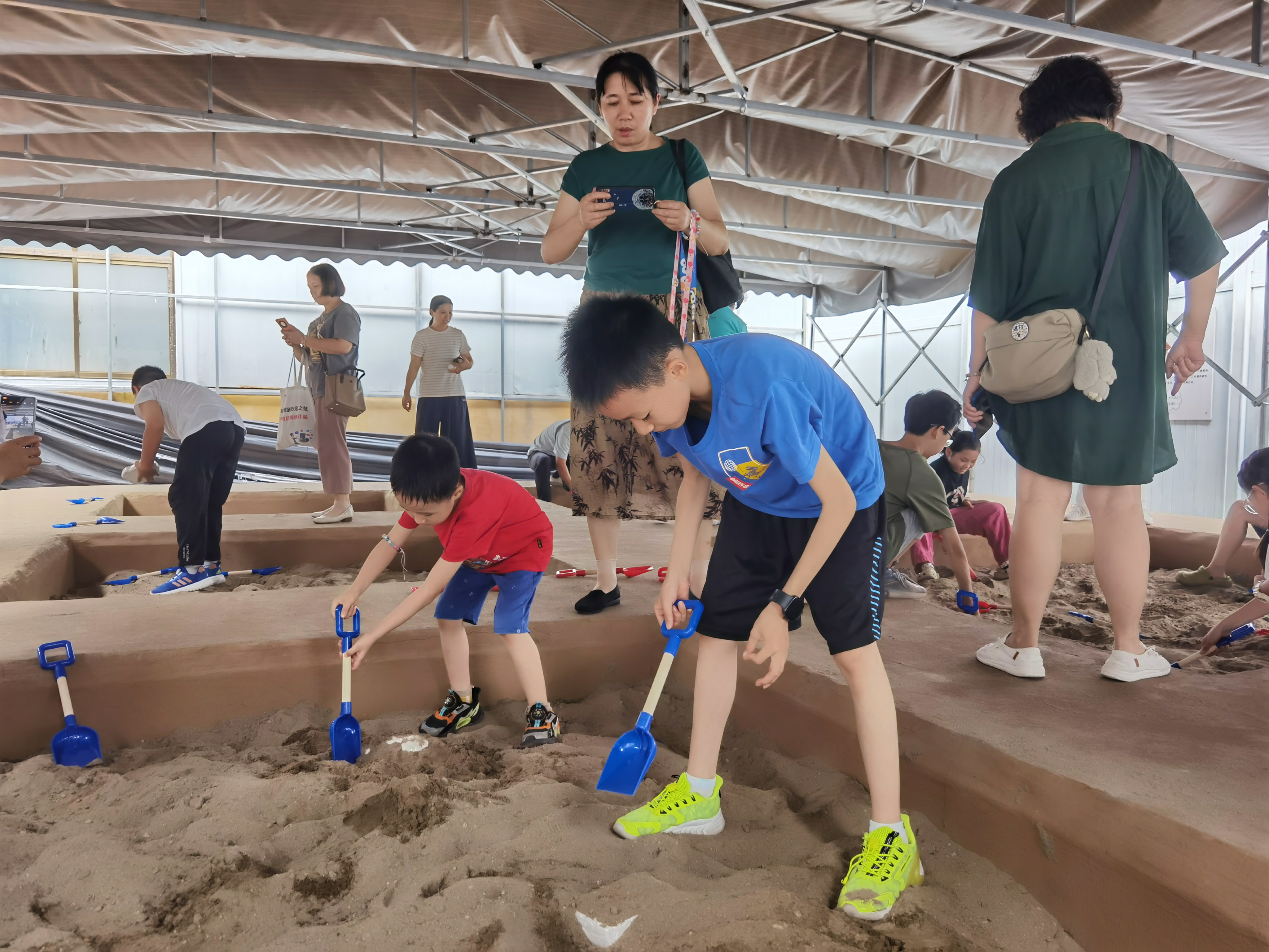 最后,在工作人员的引领下,大家又拿起“手铲”和刷子,化身为“考古队员”,在指定模拟考古箱内展开发掘活动,沉浸式体验神秘的考古工作,家长和孩子们在新奇、好玩、有趣的氛围中汲取丰富的历史文化知识,感受先人的智慧结晶,探寻中华文化的根脉以及博大精深的中华文明。