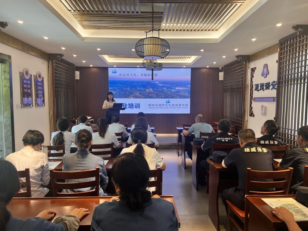 扬州大运河文化旅游度假区地处扬州城市中心城区北部,乃中国城市休闲度假的杰出代表。其依托独特资源,围绕扬州特色大运河文化主题,精心打造大运河休闲养生度假产品,既彰显扬州大运河的独特园林艺术,又融入多元休闲人文度假元素,尽显多样气质。景区工作人员通过业务知识培训,熟练掌握度假区边界范围,熟悉周边美食、景点、住宿等信息,梳理扬州丰富的度假资源,进一步满足来扬游客对多元化休闲度假的需求和体验。