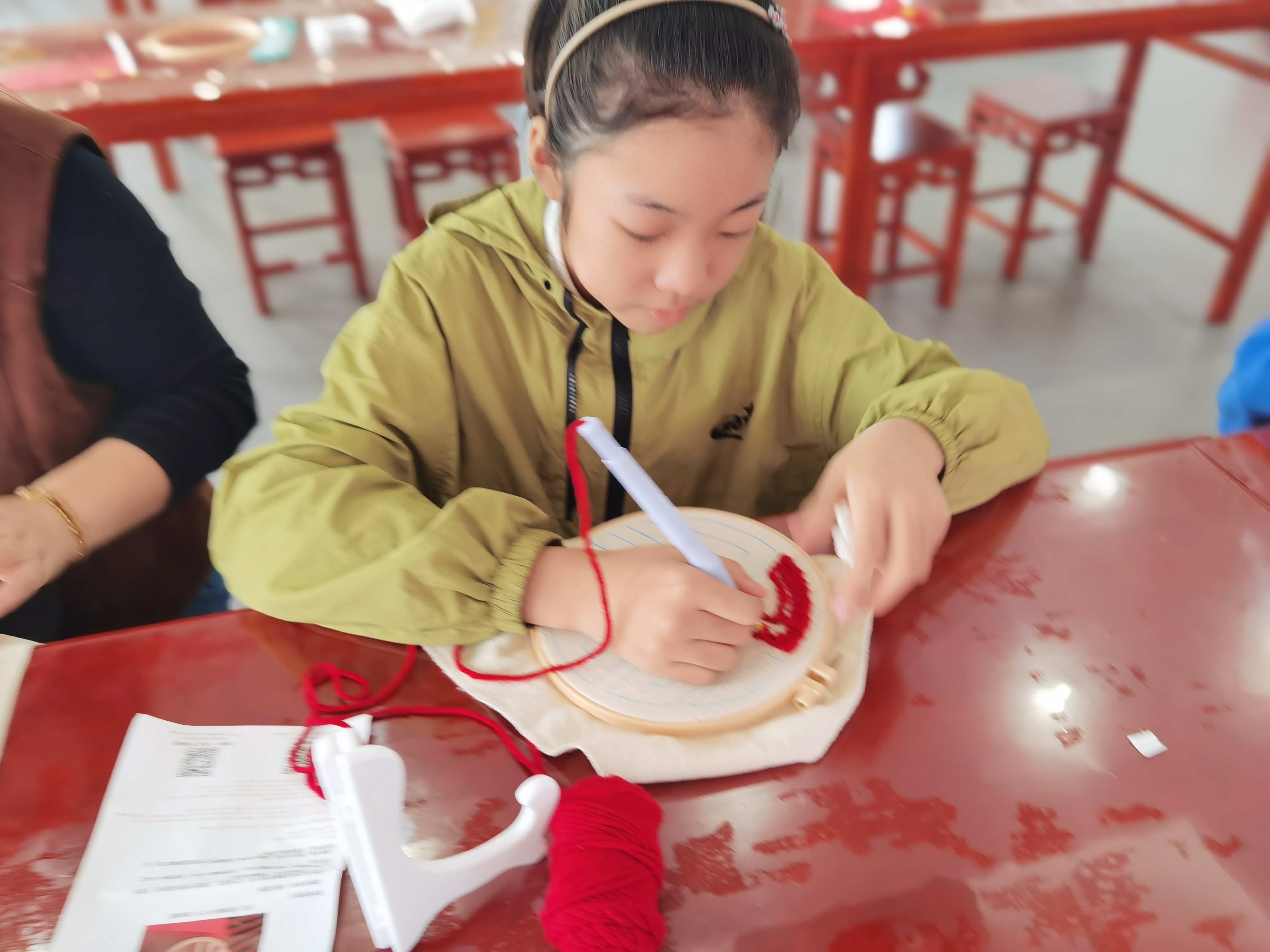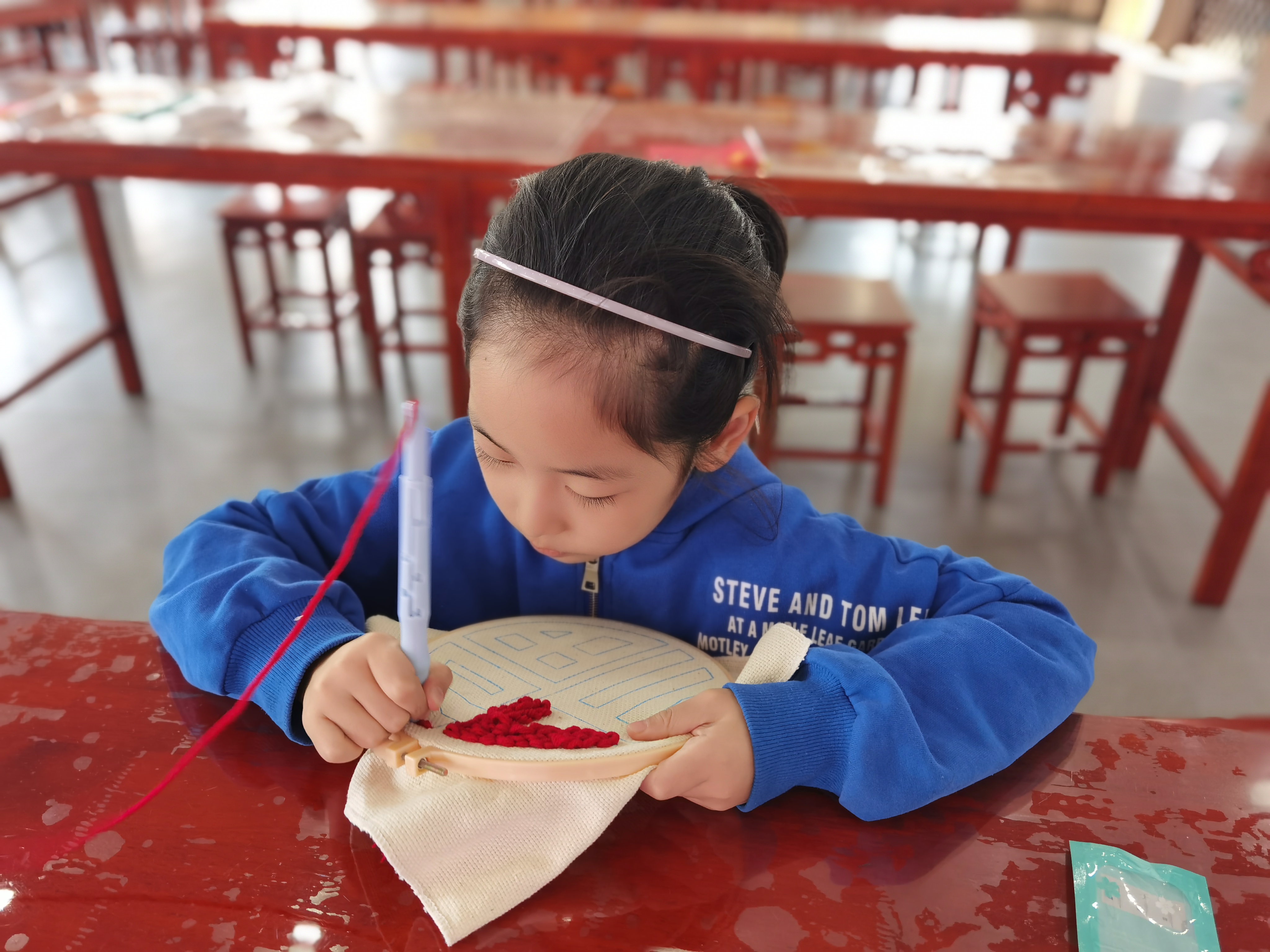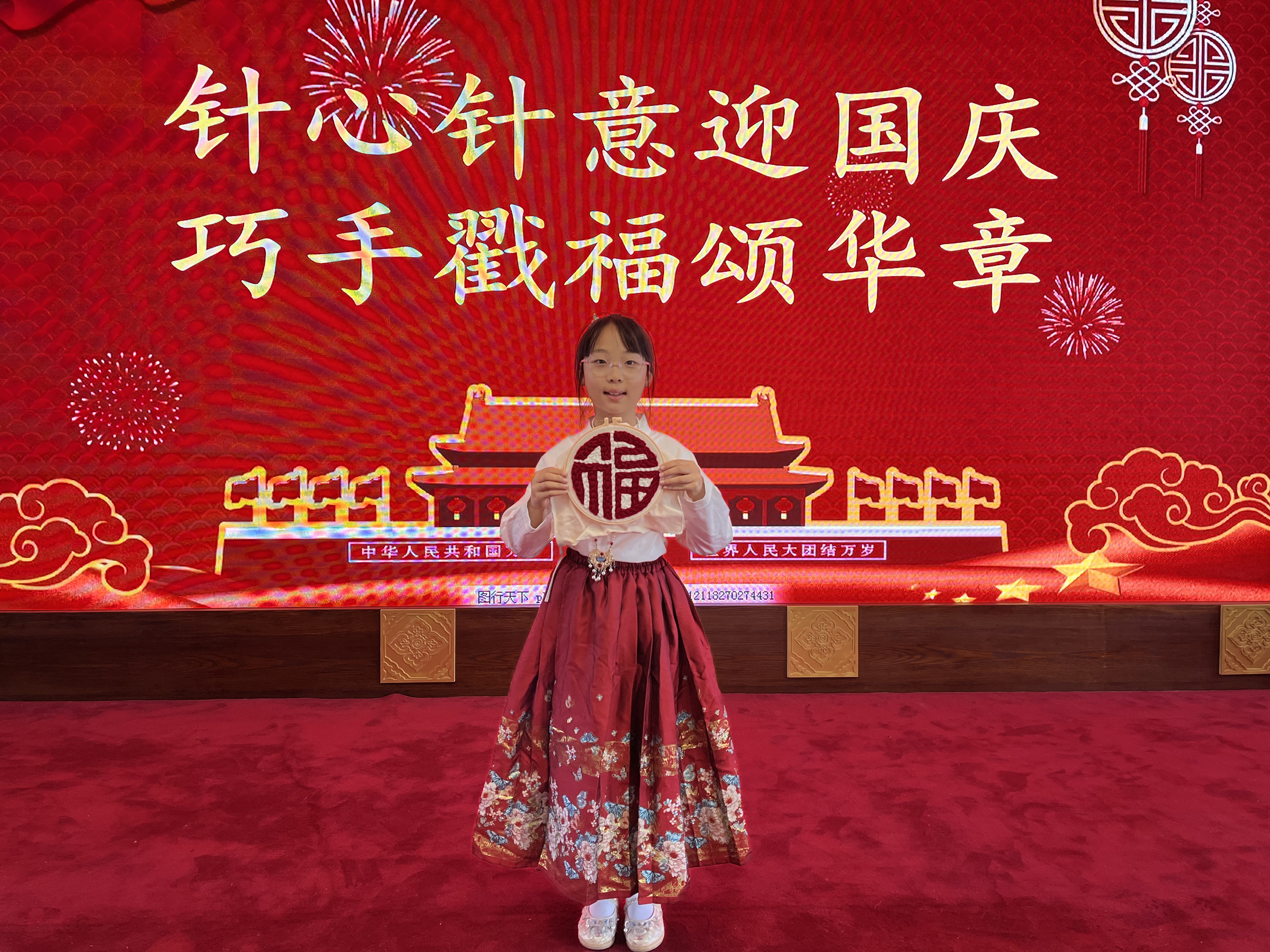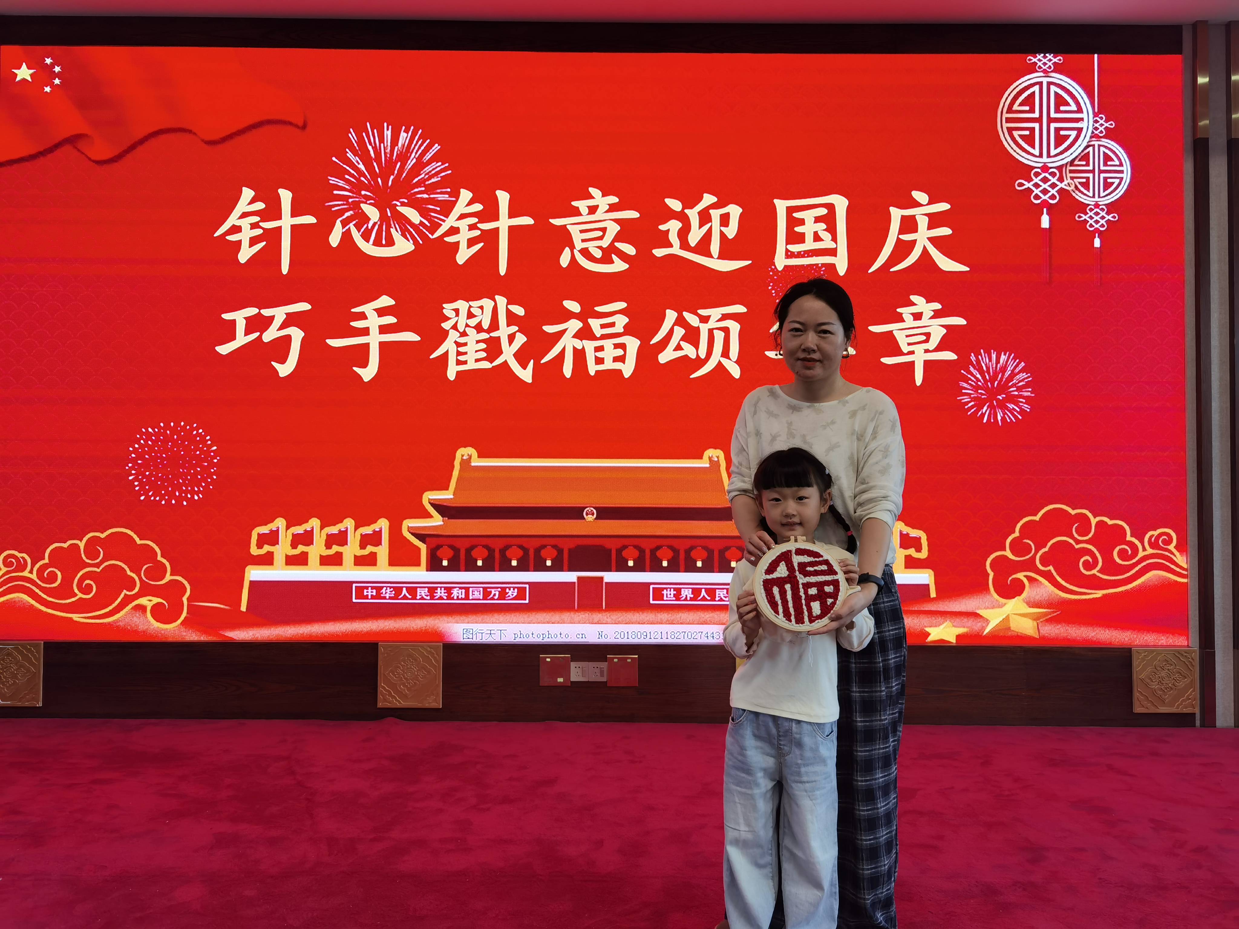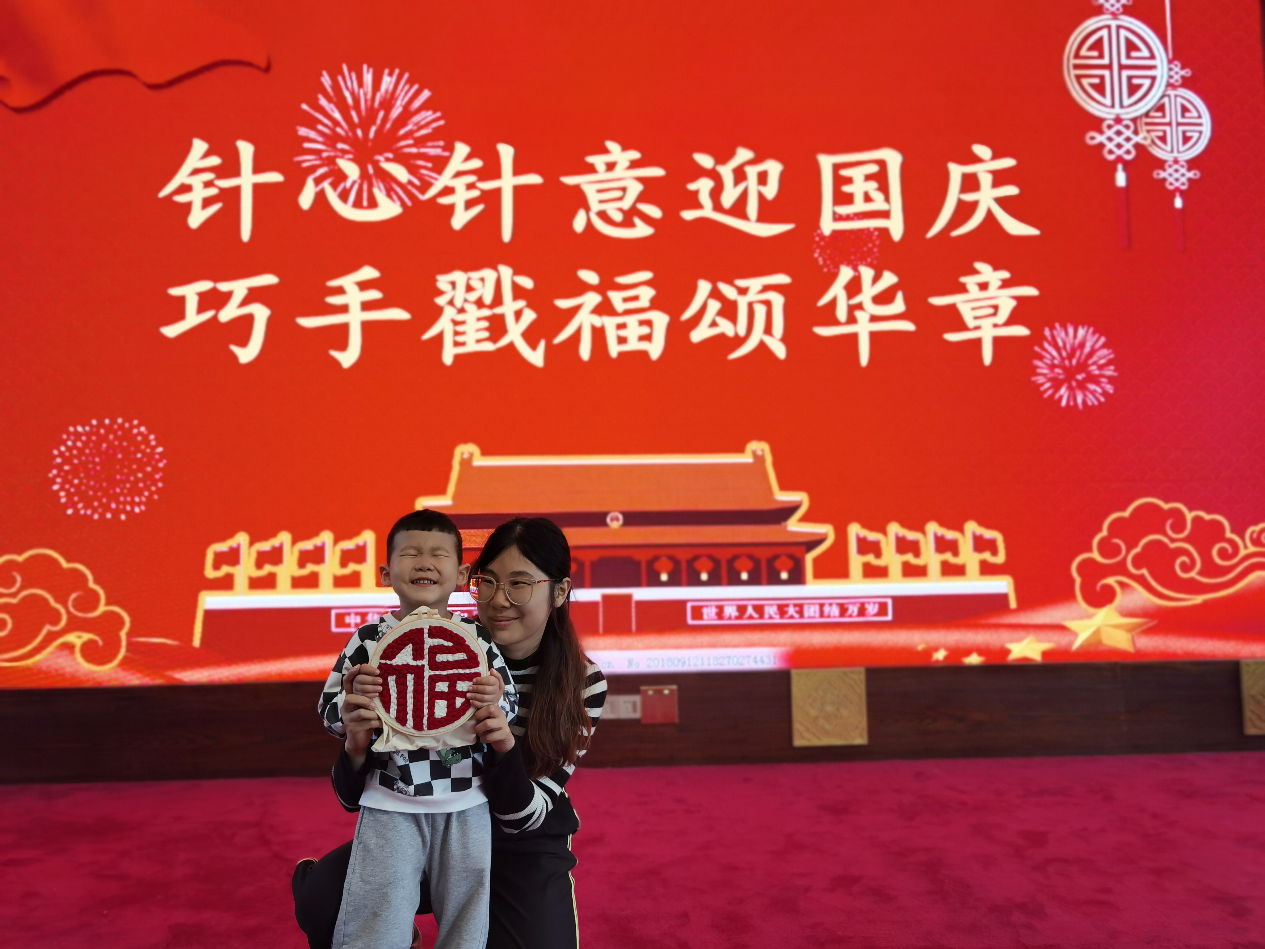 活动现场,孩子们在父母的陪伴下,用红色布料和线针,亲手缝制了一幅幅饱含祝福的“戳绣”作品。一枚绣花针、一把红丝线,在孩子们稚嫩的手指间穿梭,每一针都凝聚着对祖国的敬爱之情,每一线都编织着对未来的美好憧憬。他们用心中的感恩,将对祖国的祝福和热爱,一针一线地绣进了作品之中,表达出最真挚的爱国情怀和对美好生活的向往。