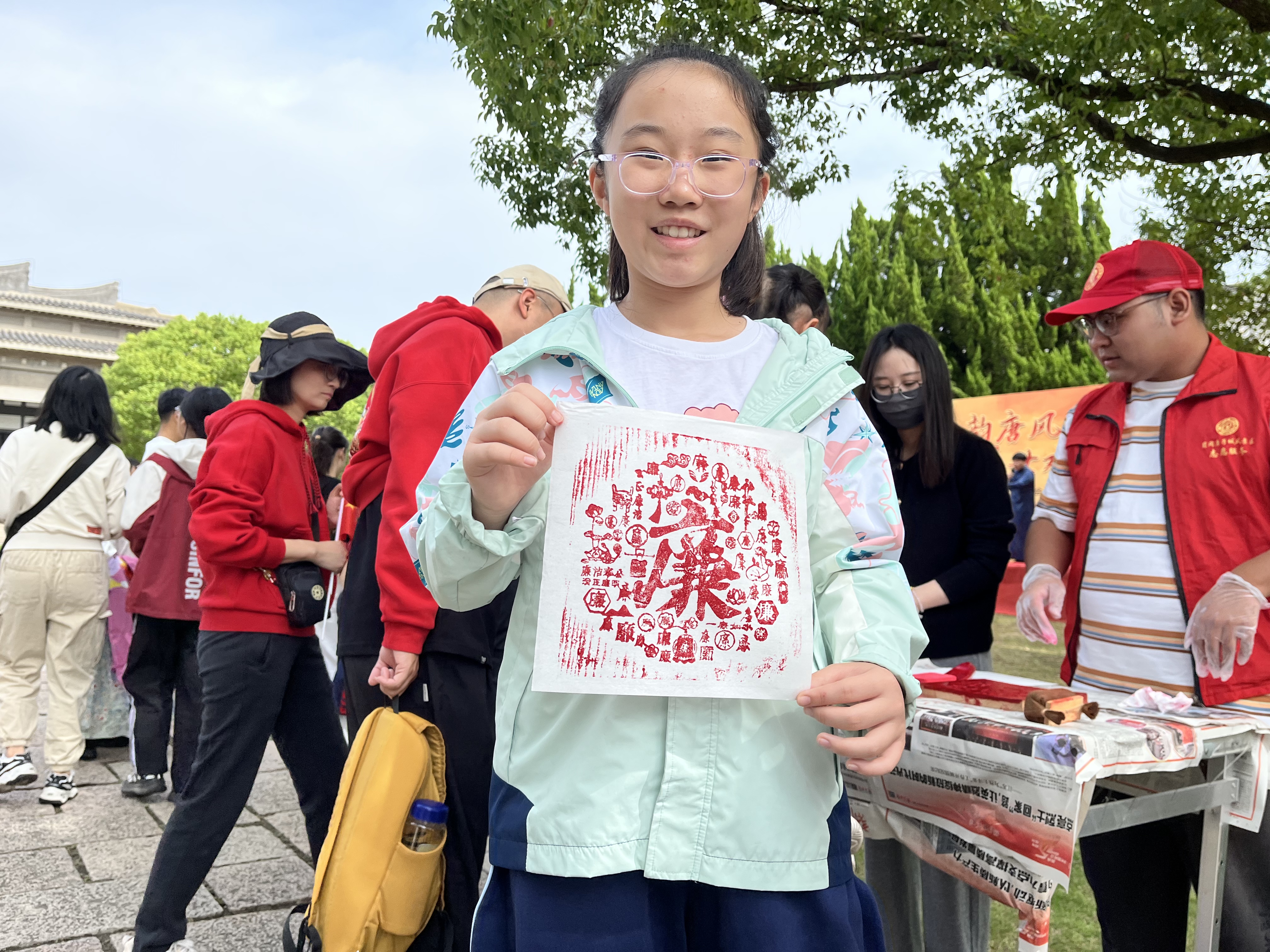 活动现场,伴随着国庆非遗展演的喜庆氛围,唐子城景区党员志愿服务者们热情地向游客介绍拓印工具的使用方法,协助游客制作百“廉”图、拓印百“清”图、绘制初心红船,以优秀传统技艺宣扬廉洁文化,筑牢尚廉思想根基,释放廉政文化影响力。