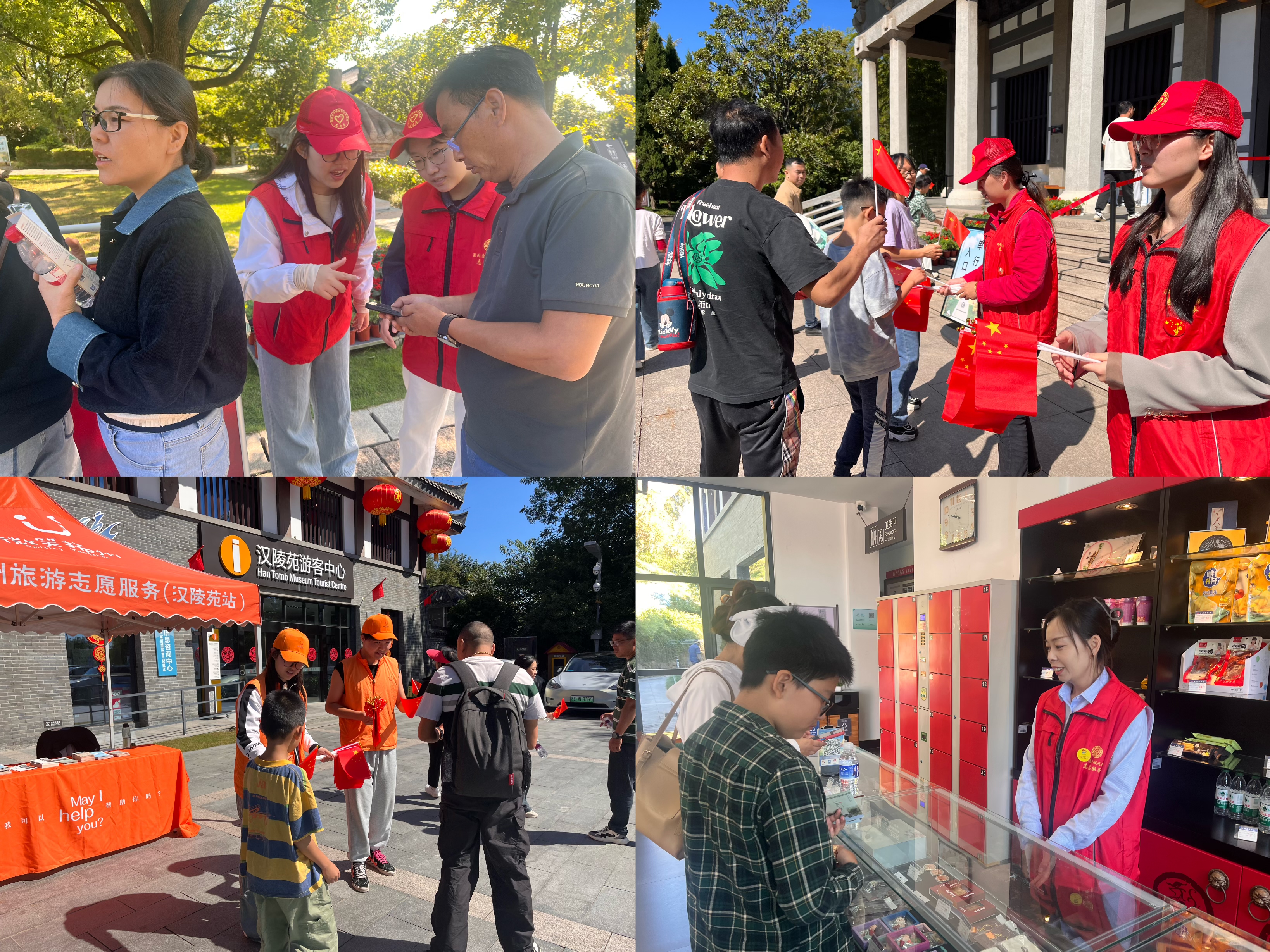 国庆黄金周期间,蜀冈唐子城风景区管理处吸引了大量游客前来参观。为确保游客的游览体验和安全,更好地服务游客、方便游客、关爱游客,唐子城景区的志愿者们积极投身于各项服务工作中。他们统一着装、坚守岗位、微笑服务,以“志愿红”献礼“中国红”,助力“景区美”。