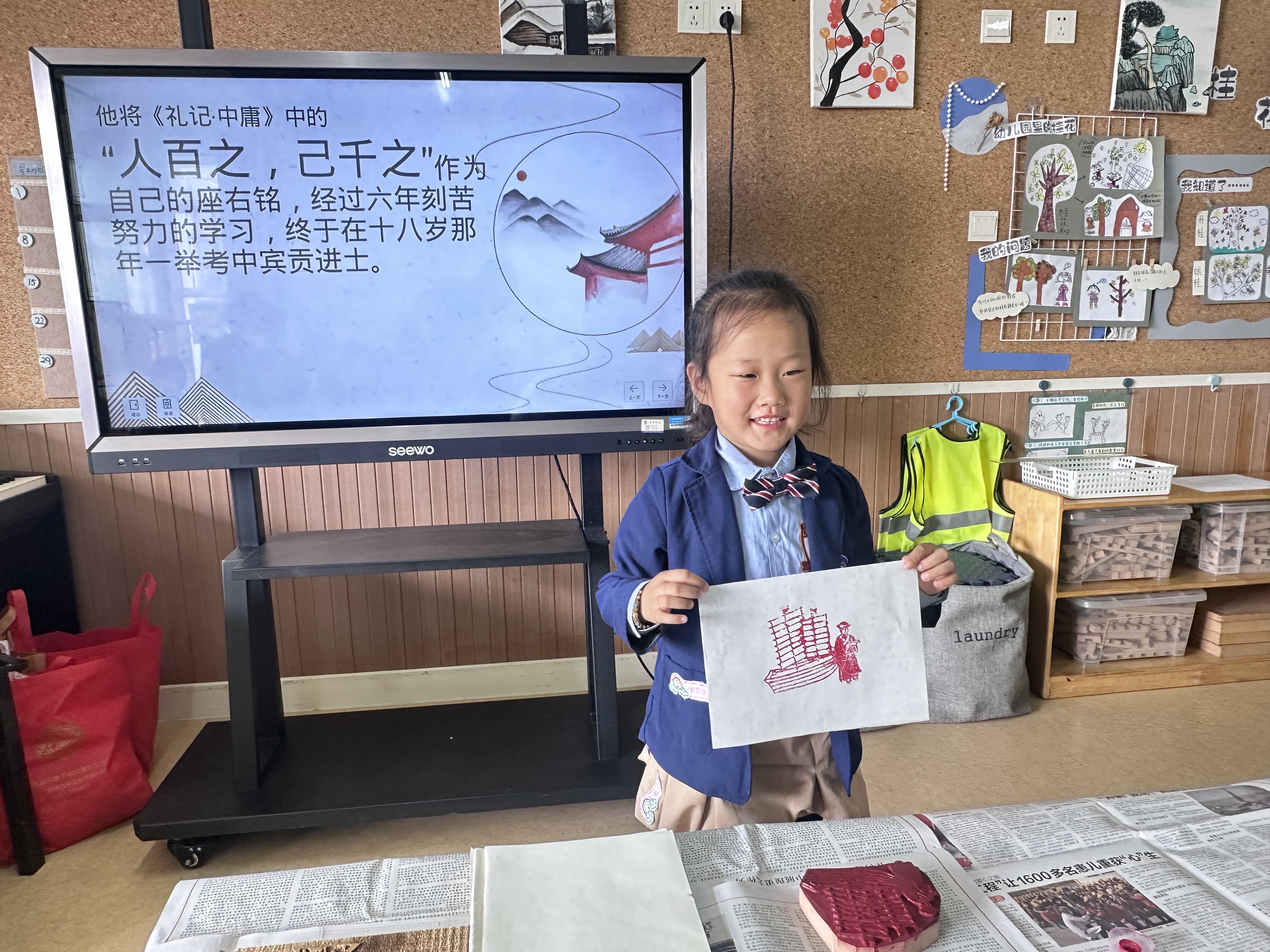 随后,孩子们开始了雕版印刷体验。虽然动作还略显生疏,但孩子们都表现出了极高的兴趣和热情。他们认真地挑选着自己喜欢的图案,然后均匀地上墨、按压,一张张精美的印刷品便在他们的小手中诞生了。这一刻,孩子们的脸上洋溢着满足和喜悦的笑容,他们深刻体会到了传统工艺的魅力和中华文化的深厚底蕴。