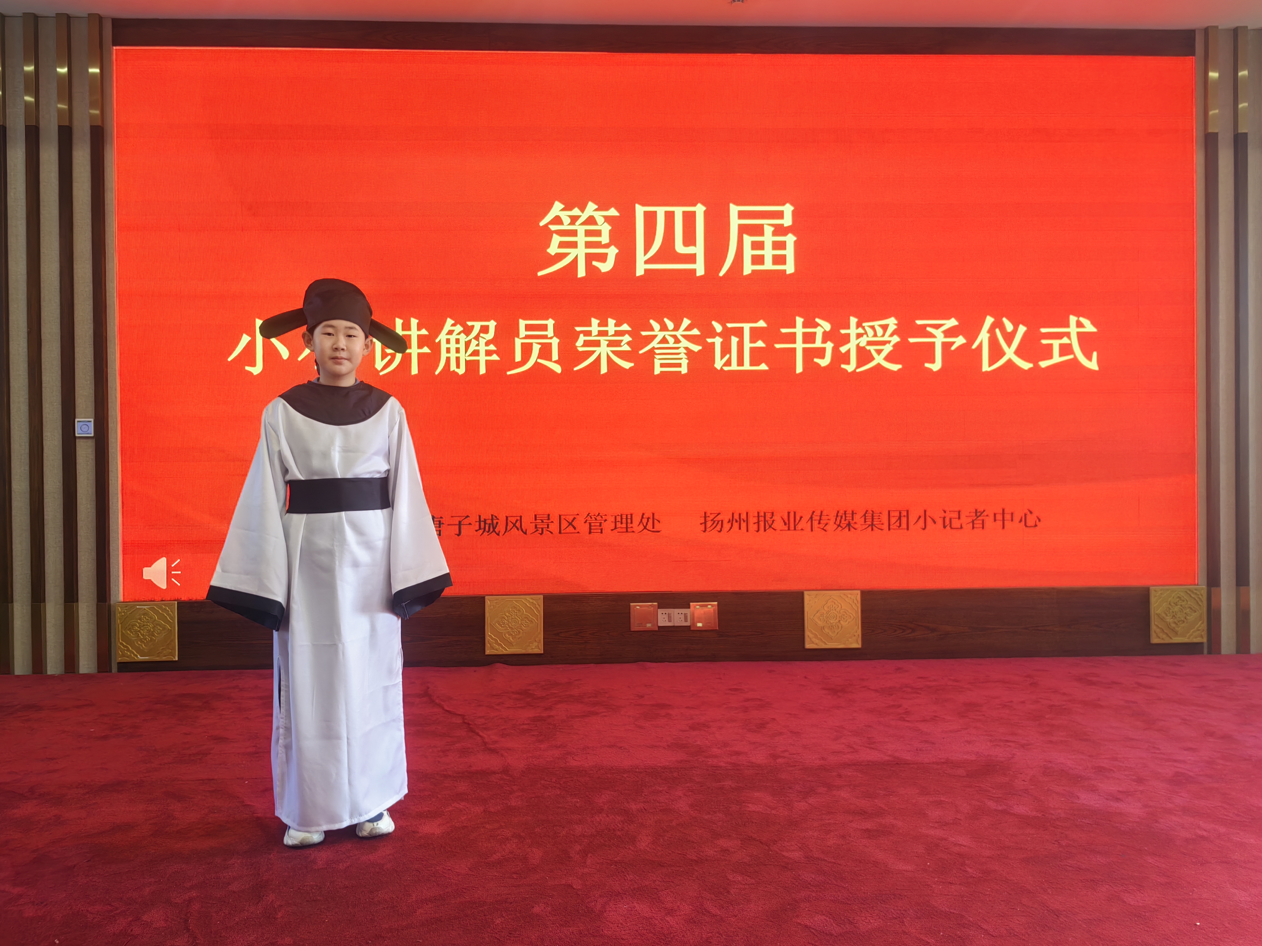最后,小小讲解员们上台领奖,由唐子城风景区管理处副主任王莹、扬州市小记者中心副总监叶明珠共同为小小讲解员们颁发荣誉证书与纪念品,伴随着观众的热烈掌声,现场气氛达到了高潮。