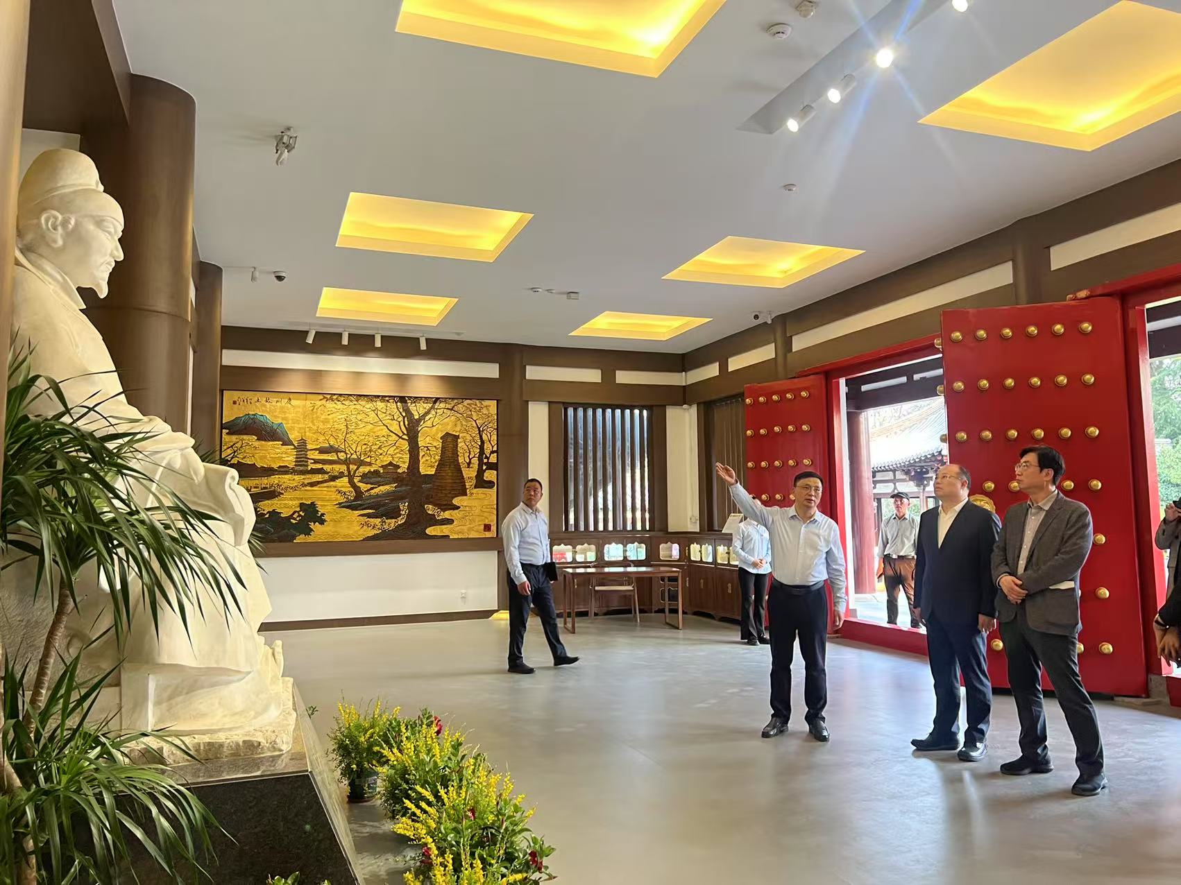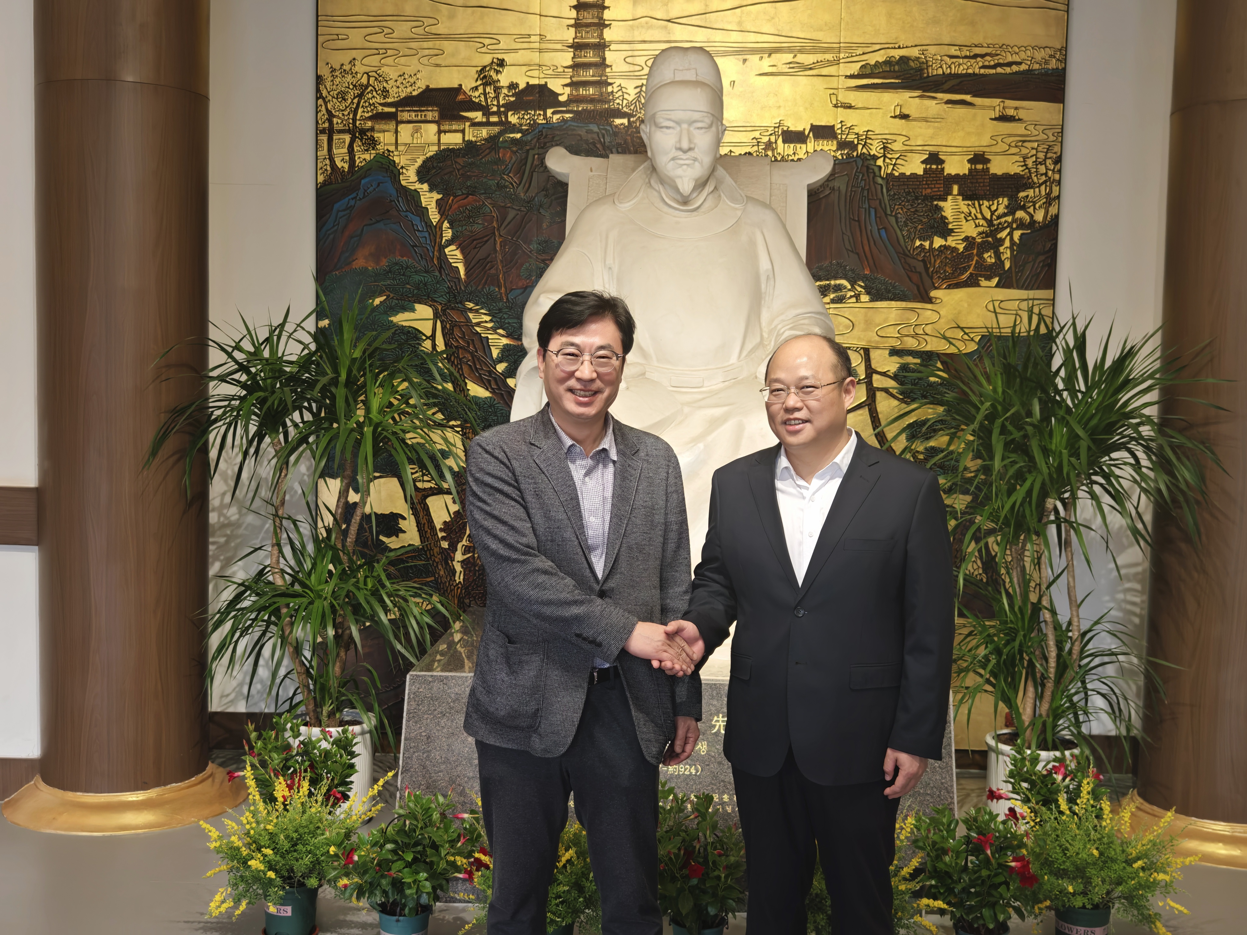 江苏省与韩国京畿道于2024年正式缔结友好省道关系,为建立运行两省道联合工作机制,江苏省与京畿道在南京正式签署江苏省-京畿道联合工作机制备忘录并召开第一次联席会议。3月26日下午,京畿道国际合作局局长朴根均一行参访扬州崔致远纪念馆。扬州市副市长罗雪明,市外办主任袁慧中、副主任徐静,蜀冈-瘦西湖风景名胜区管委会副主任鞠斐扬陪同参观。