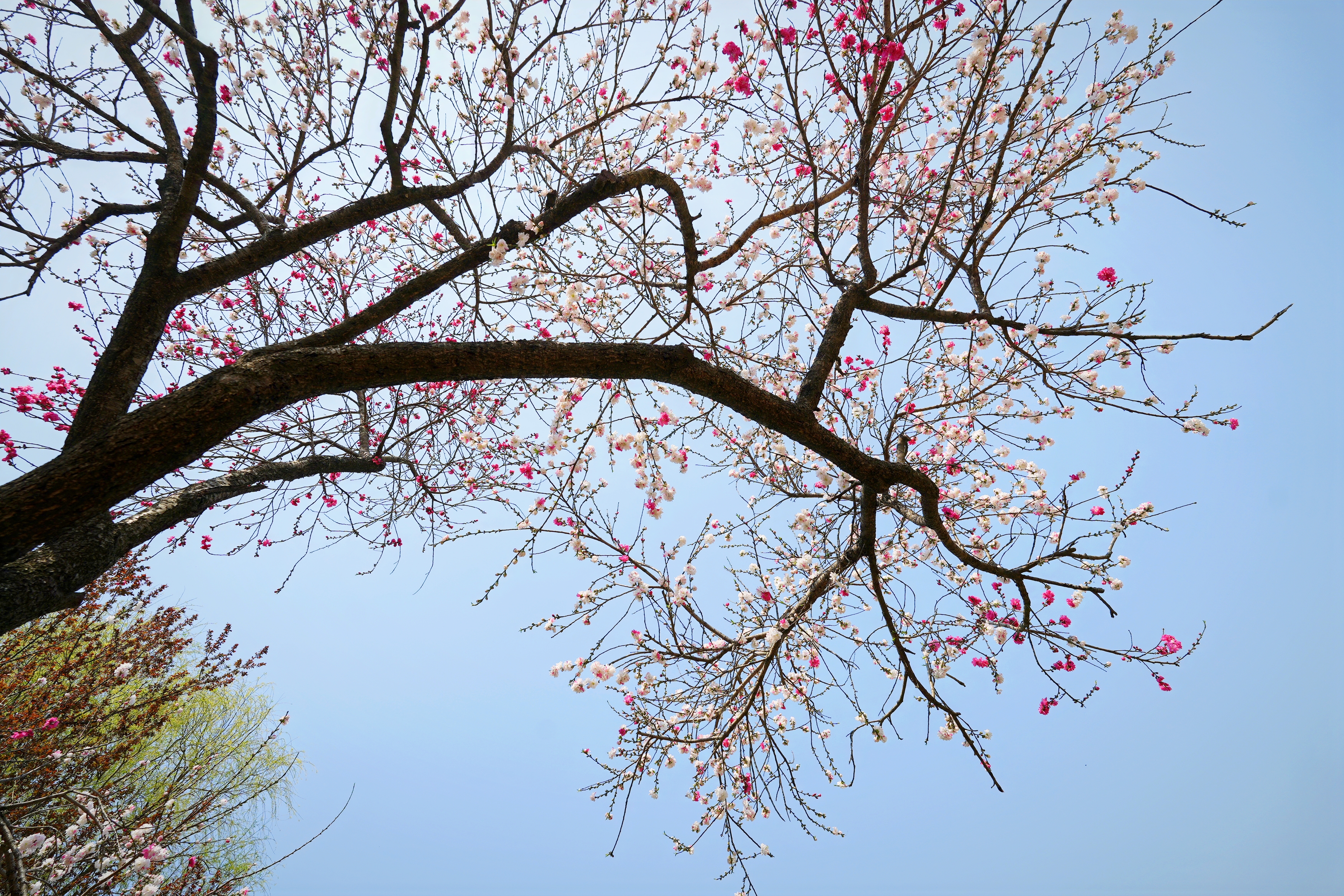 碧桃自古为文人雅士所爱,其名“洒金”源于花瓣红白相间的洒落之美,而四色变种更添神秘色彩。同一枝条上绽放白、浅粉、深粉、红四色花朵,色彩渐变如泼墨,宛若自然绘就的“跳枝”画卷,成为扬州春日不可错过的限定美景。