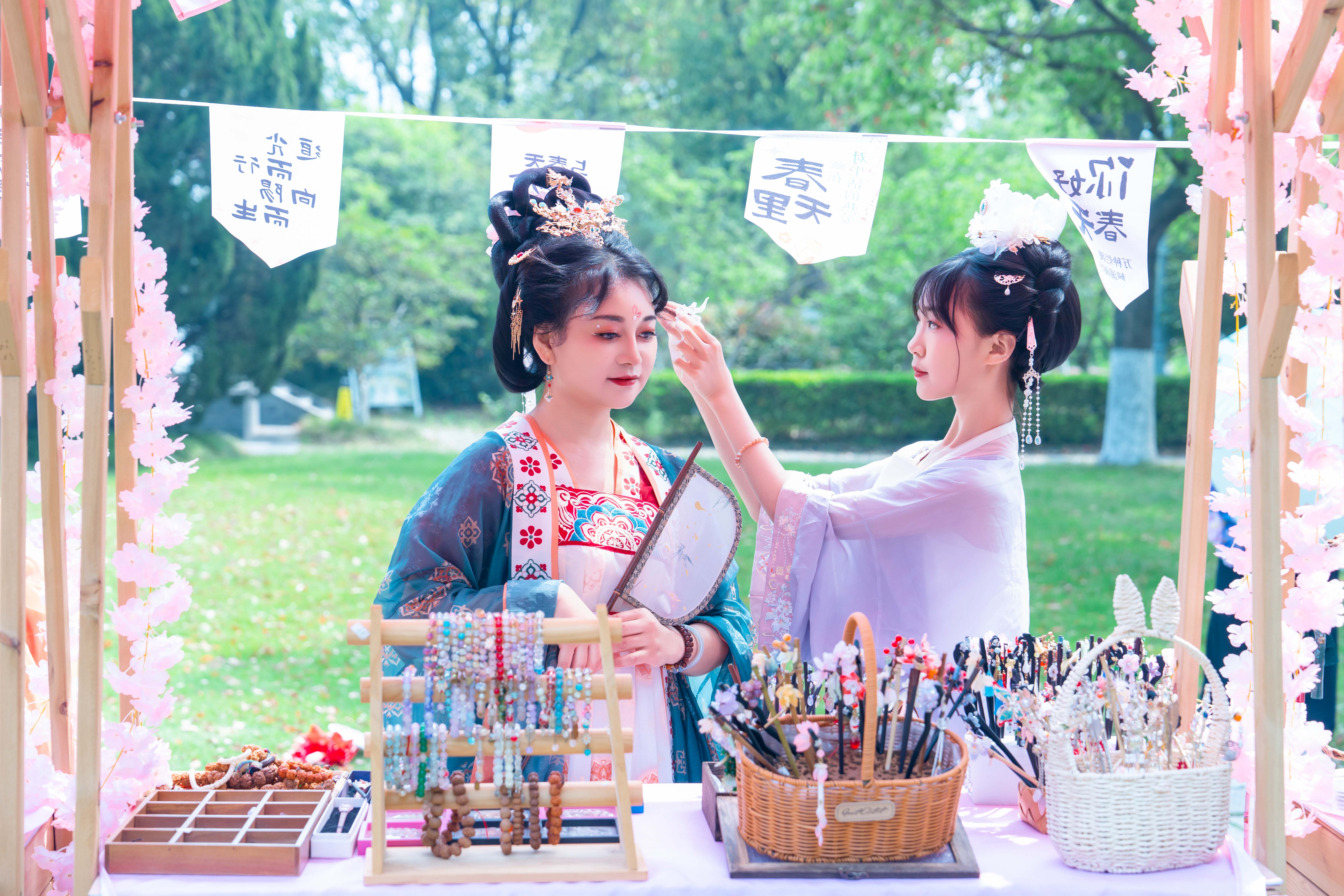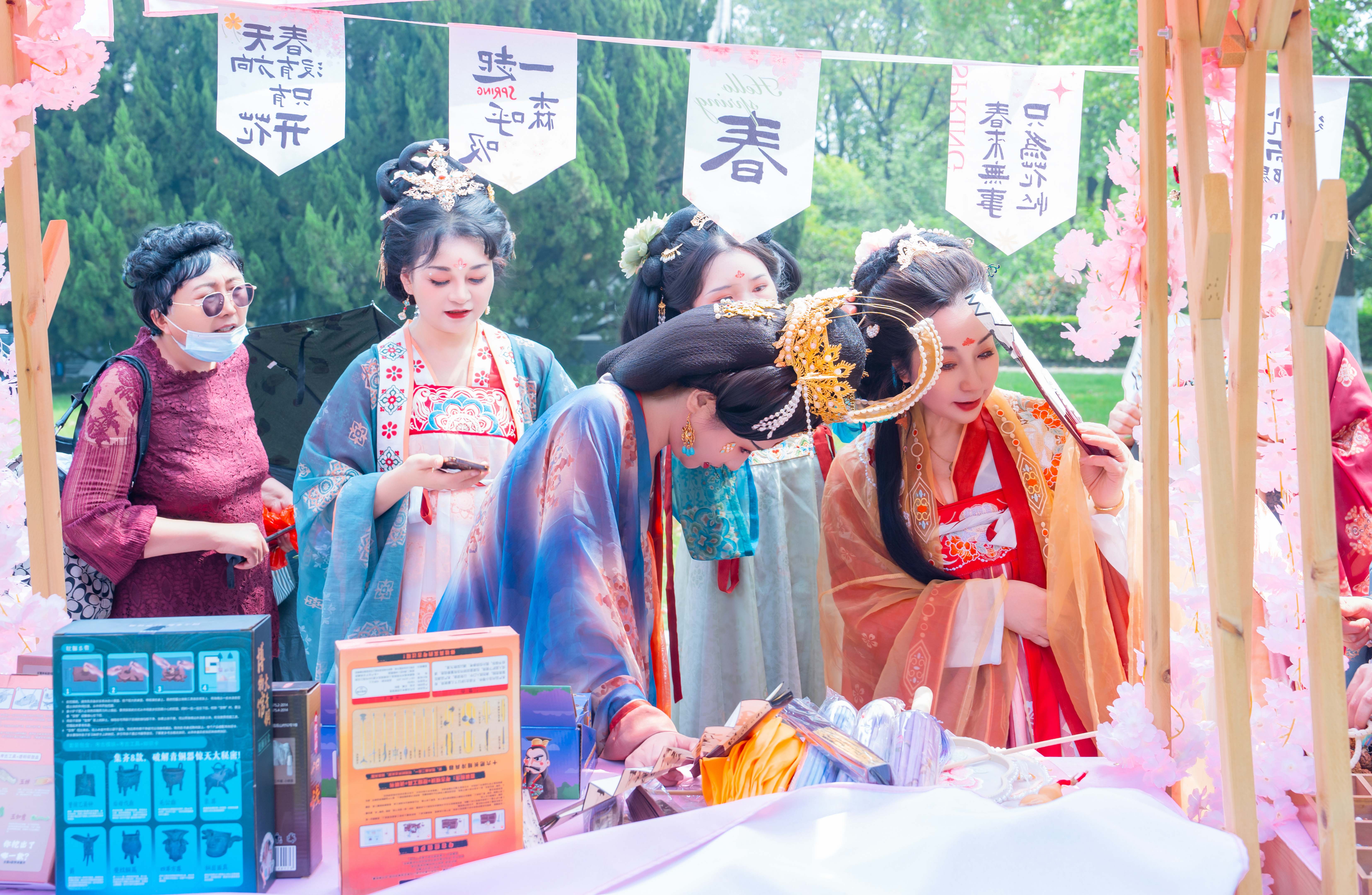 千竿修竹如碧涛涌动,掩映着巍峨的宫阙。风起时,竹林簌簌,宫阙台阶上衣袂与砖石交叠,处处构成绿意与古韵交织的诗意角落。一场春日文创市集,引得游人纷纷驻足。