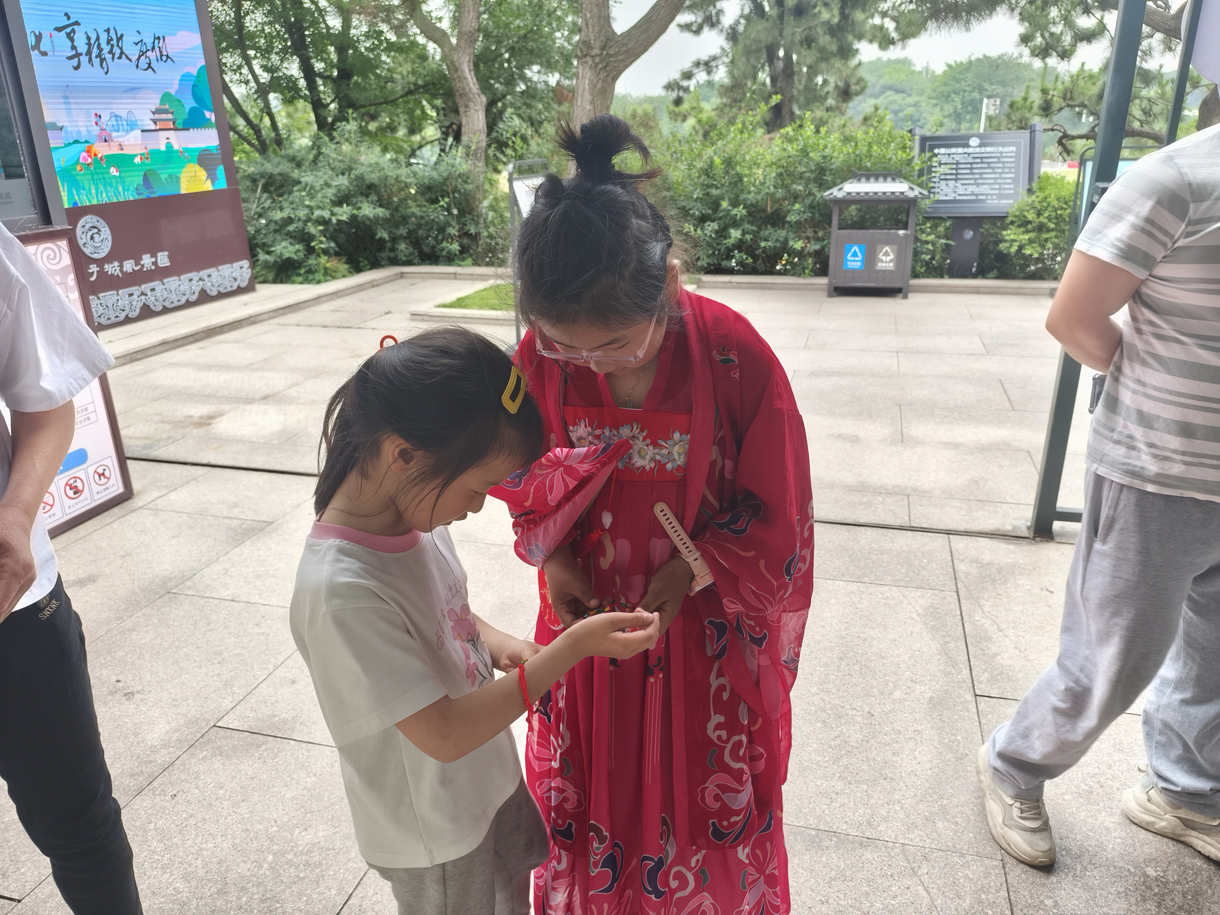 端午节期间,为弘扬传统文化,营造节日氛围,蜀冈唐子城风景区开展“五彩纳福迎端午”主题活动。工作人员在景区入口向游客免费发放端午辟邪五彩绳,传递平安吉祥的美好寓意。