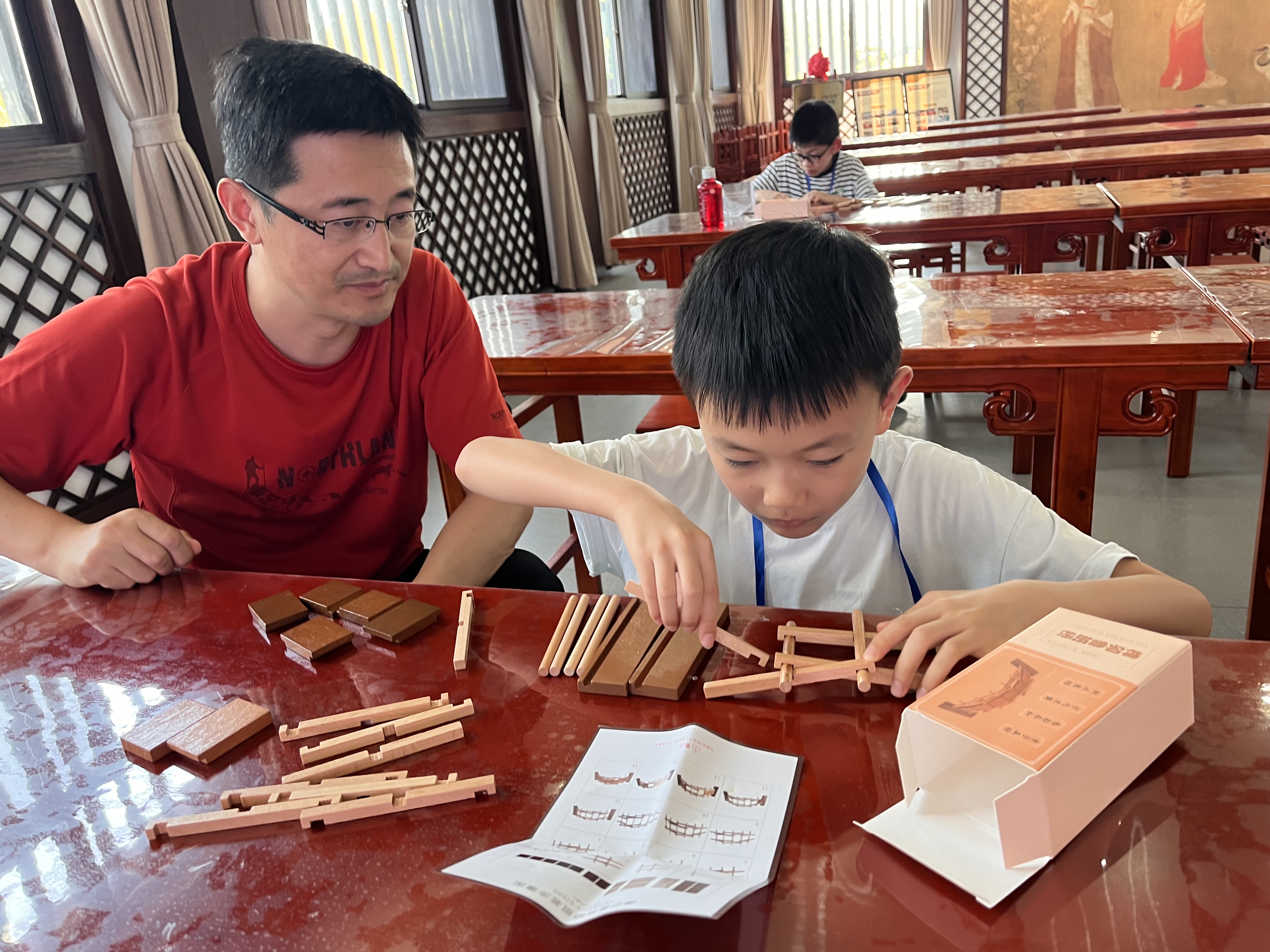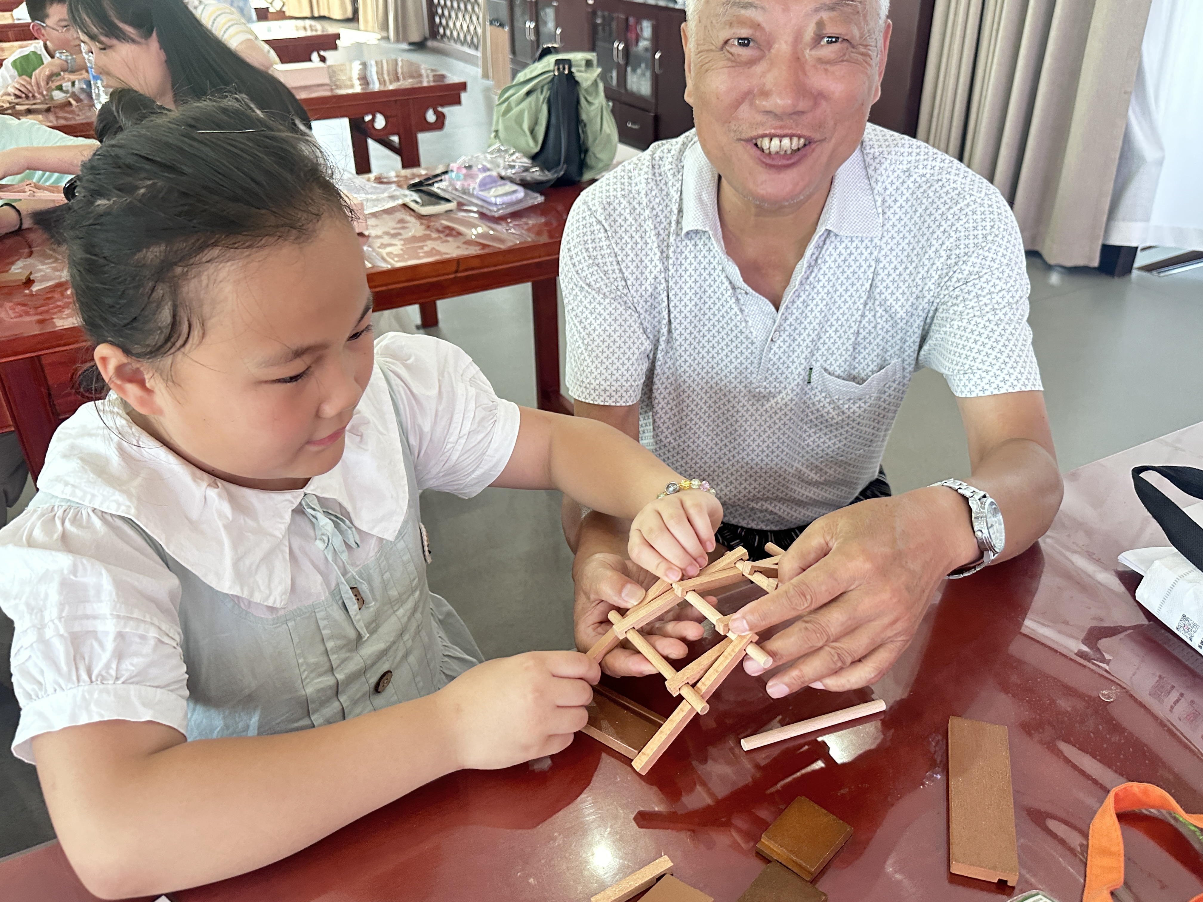 “原来木头真的能自己‘握手’!”孩子们指尖轻触木构件,屏息凝神间,凸榫与凹卯精准咬合。