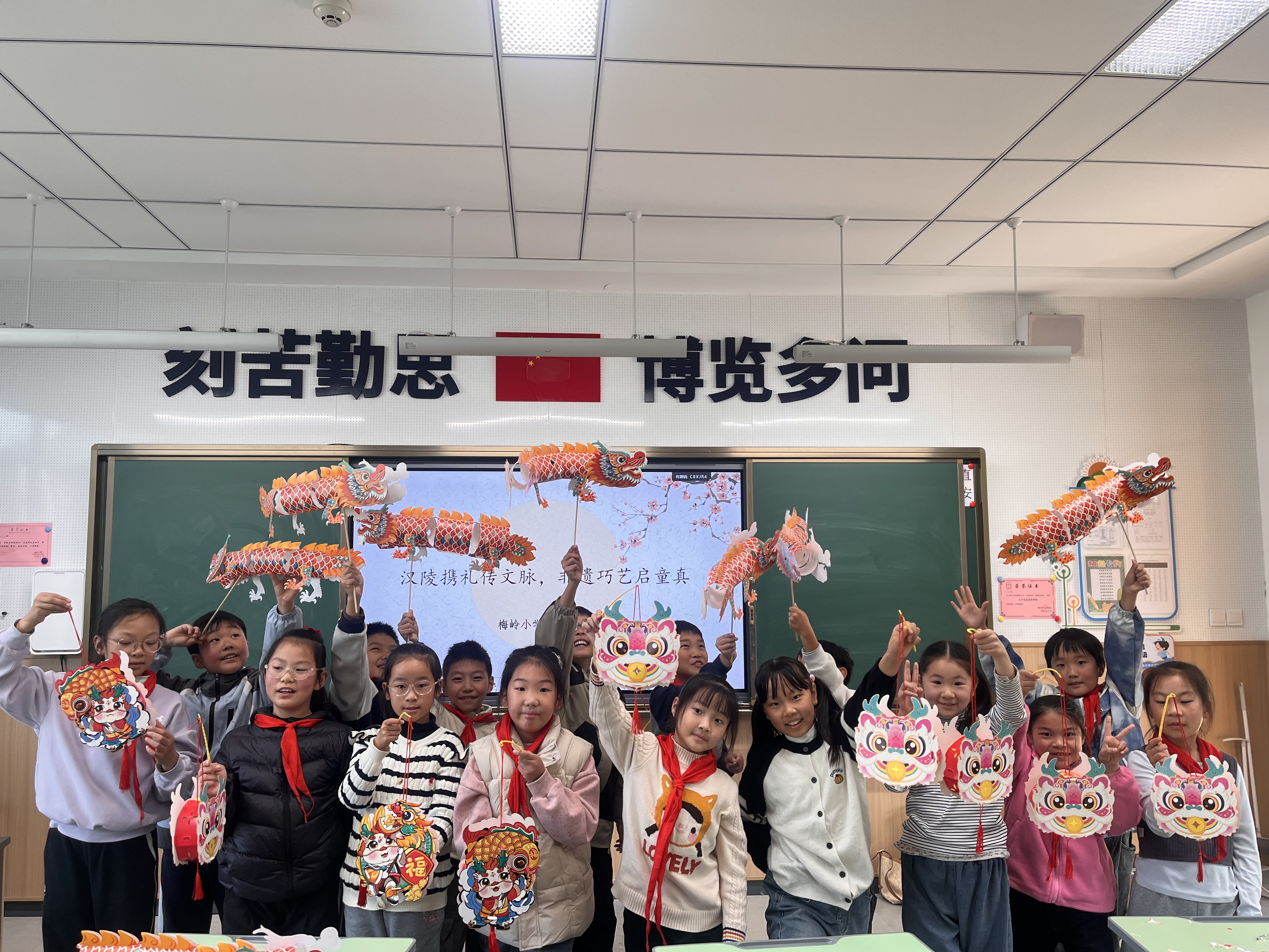 非遗面塑环节更是点燃了孩子们的创作热情。在老师们的指导下,彩色面团在小手中几经揉捏、按压、塑形,很快变成了有模有样的小柿子。“我做了两个柿子,希望大家柿柿如意!”孩子们举着自己的作品,脸上洋溢着成就感。而手作龙灯环节,孩子们合作剪裁、粘贴、组装,看着竹架与彩纸渐渐变成威风凛凛的龙灯,对传统手工艺的赞叹声不绝于耳。