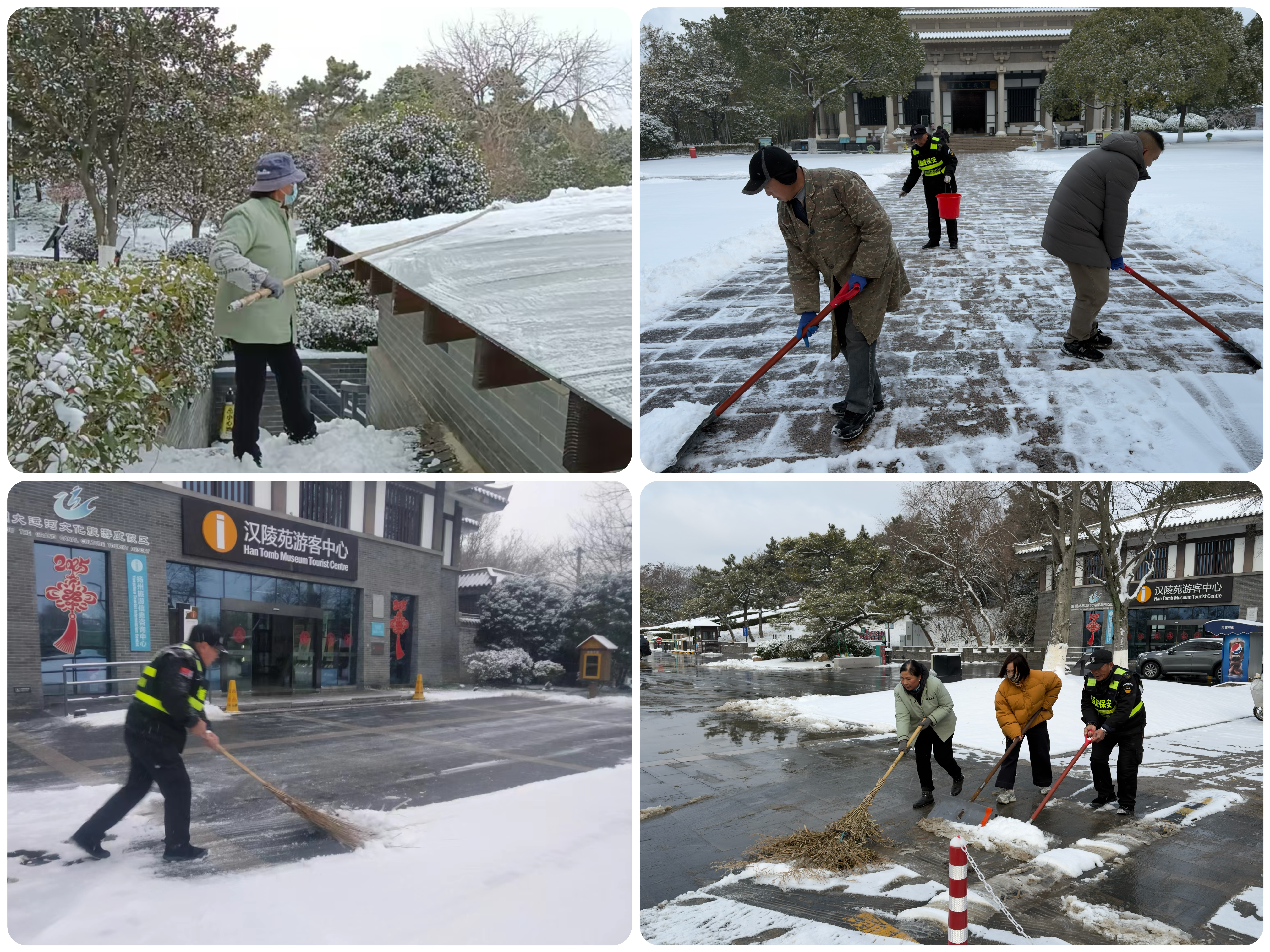 受强冷空气影响,唐子城景区迎来降雪天气,部分区域出现道路结冰现象。为保障游客安全与游览体验,蜀冈唐子城风景区管理处迅速启动极端天气应急预案,组织工作人员开展全天候扫雪除冰行动,用实际行动筑牢安全防线,绘就冬日暖心画卷。