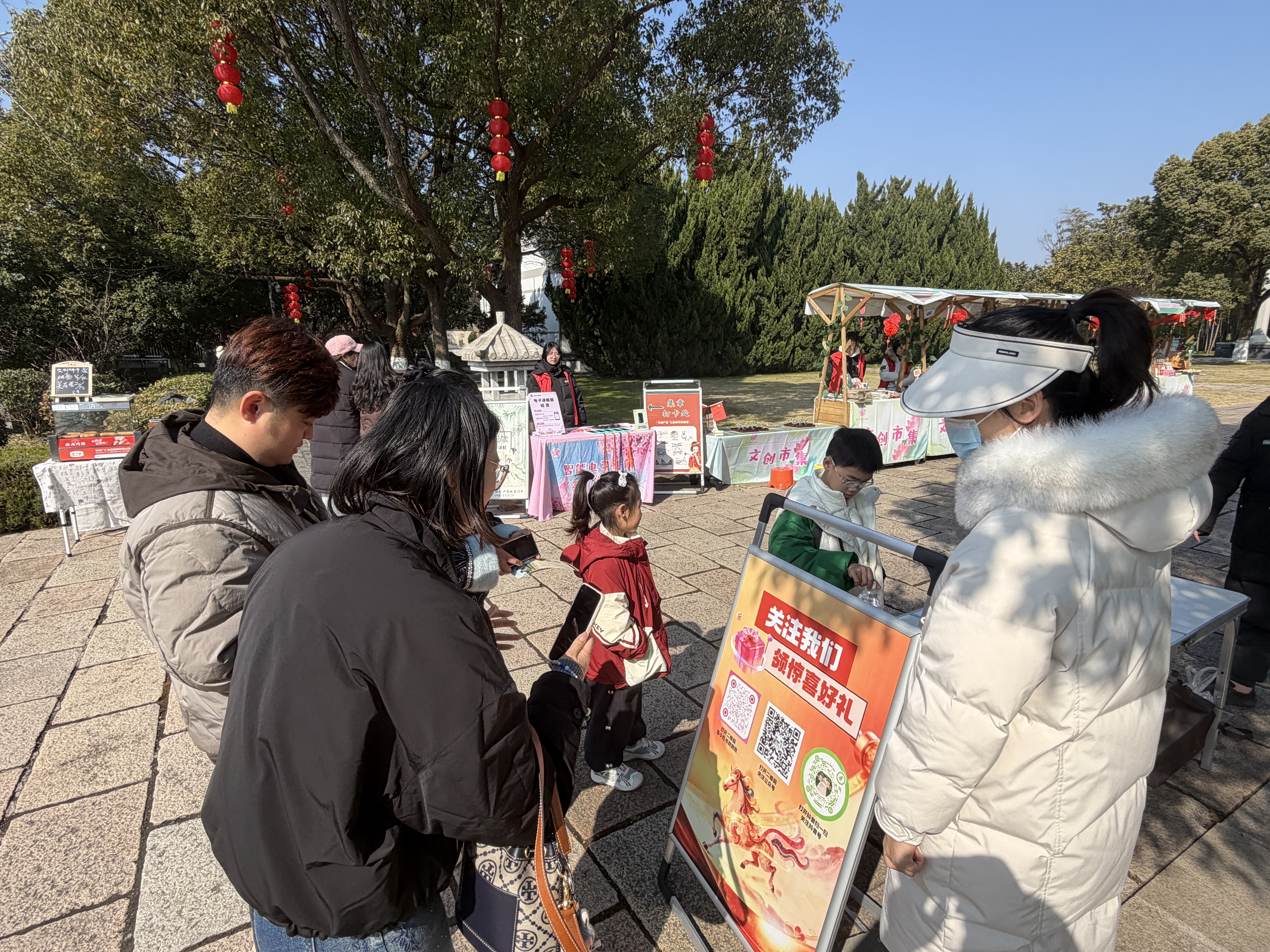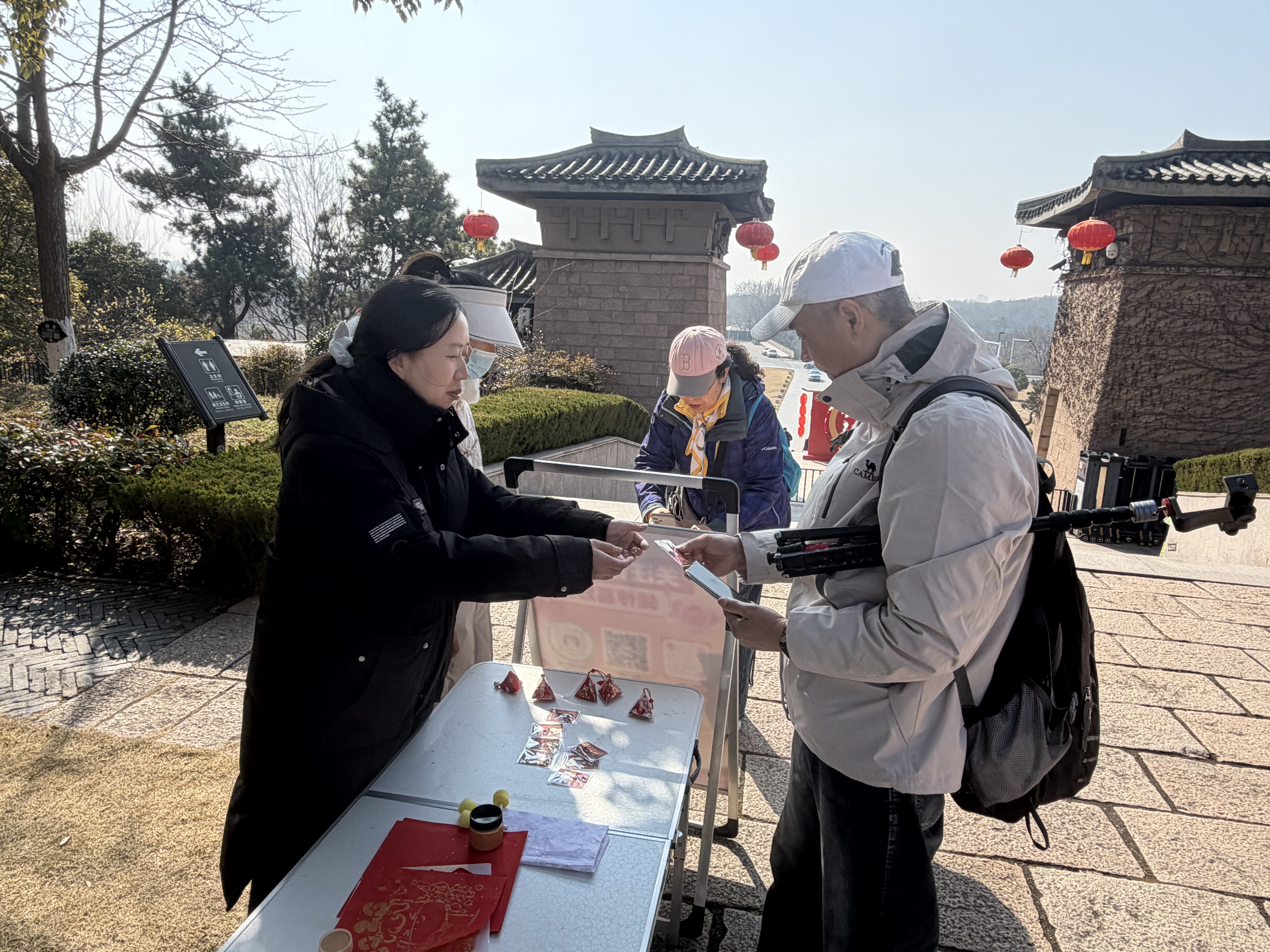 除了沉浸式非遗体验,景区还推出扫码赠礼活动。游客只需扫码关注景区官方平台,即可免费领取定制马年元素伴手礼。精致的文创礼品兼具纪念意义与实用性,深受游客喜爱,也让新春祝福触手可及。
