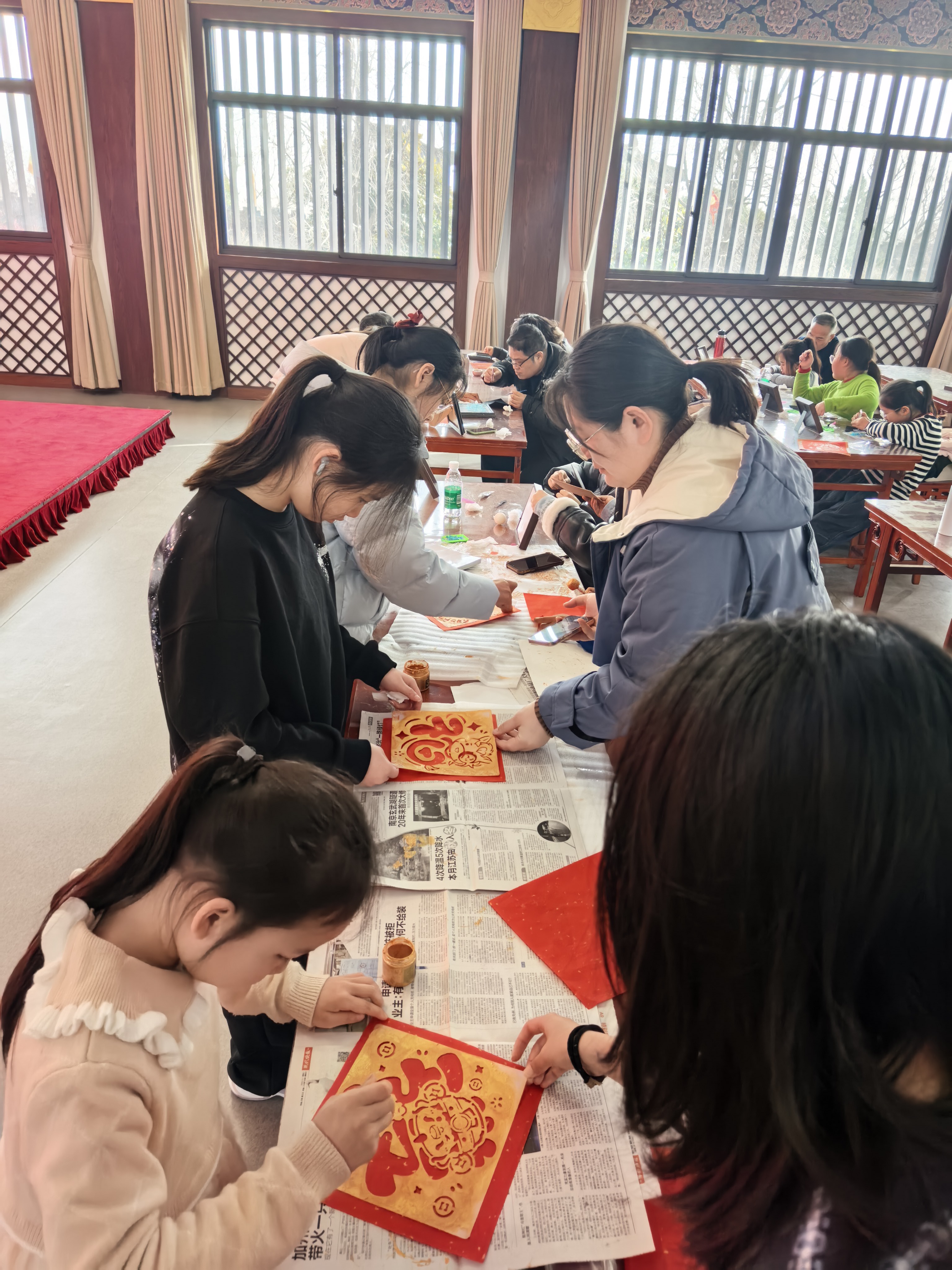2月22日,“非遗焕新迎马年,萌娃传艺闹新春”专场非遗体验活动在延和阁二楼研学体验中心温情启幕,十余组亲子家庭齐聚一堂,共赴这场传统文化之约。活动现场,福字拓印环节中,萌娃们化身“小小传承人”,在家长的协助下,认真完成每一个步骤,让古老技艺在指尖流转。螺钿拼贴体验区里,孩子们精心挑选贝片,将天然莹润与马年元素巧妙融合,在方寸之间勾勒东方美学,一件件独具创意的手作作品,尽显童真与匠心。
