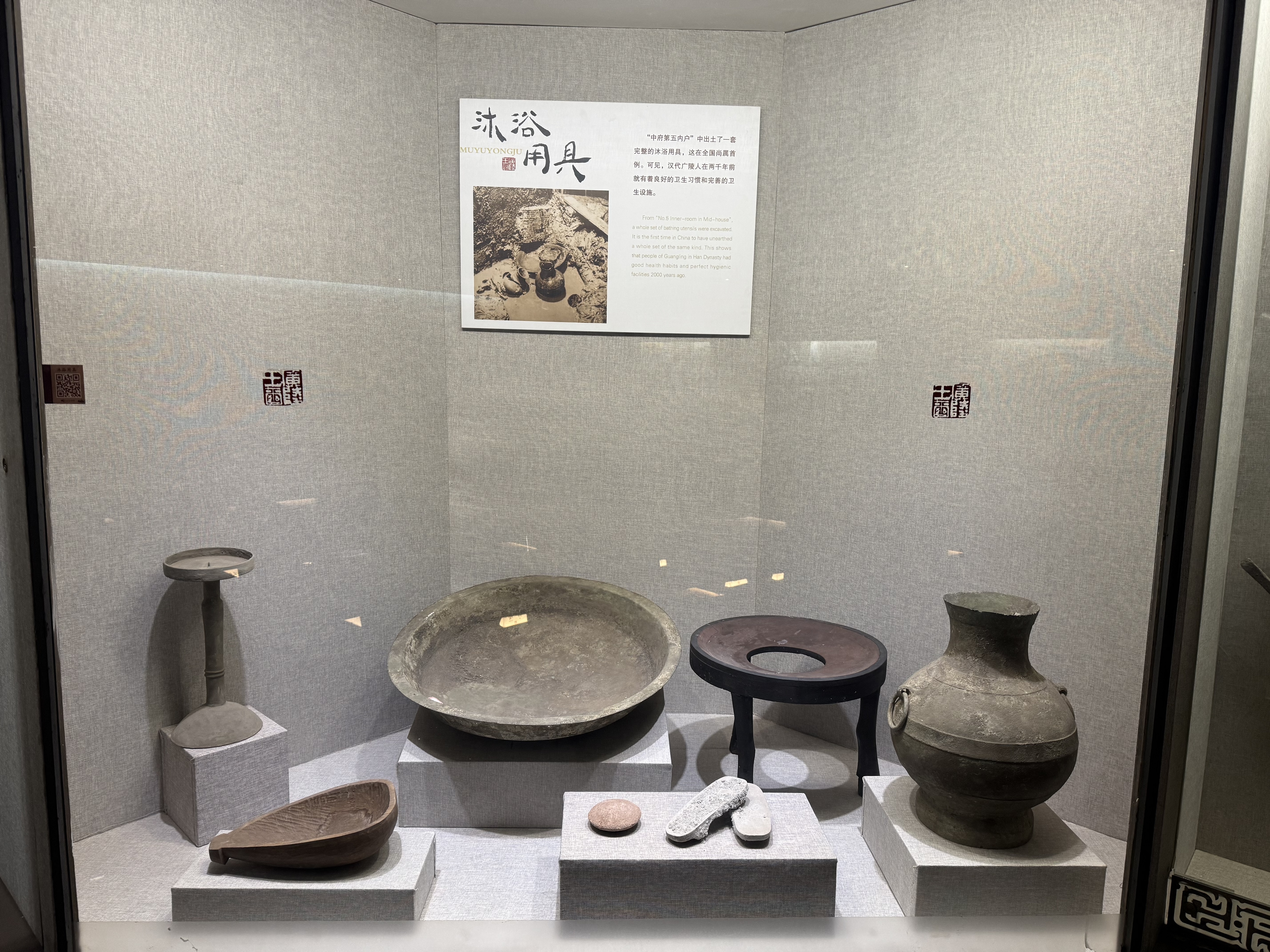 扬州汉广陵王墓博物馆汉代沐浴展柜陈设