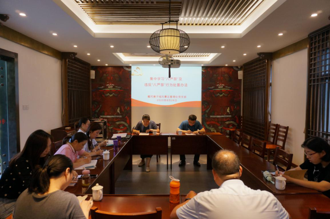 管理处副主任、党支部组织委员王艳领学了最新修订的《江苏纪检监察干部“八严禁”》及《纪检监察干部违反“八严禁”行为处置办法》的详细内容。