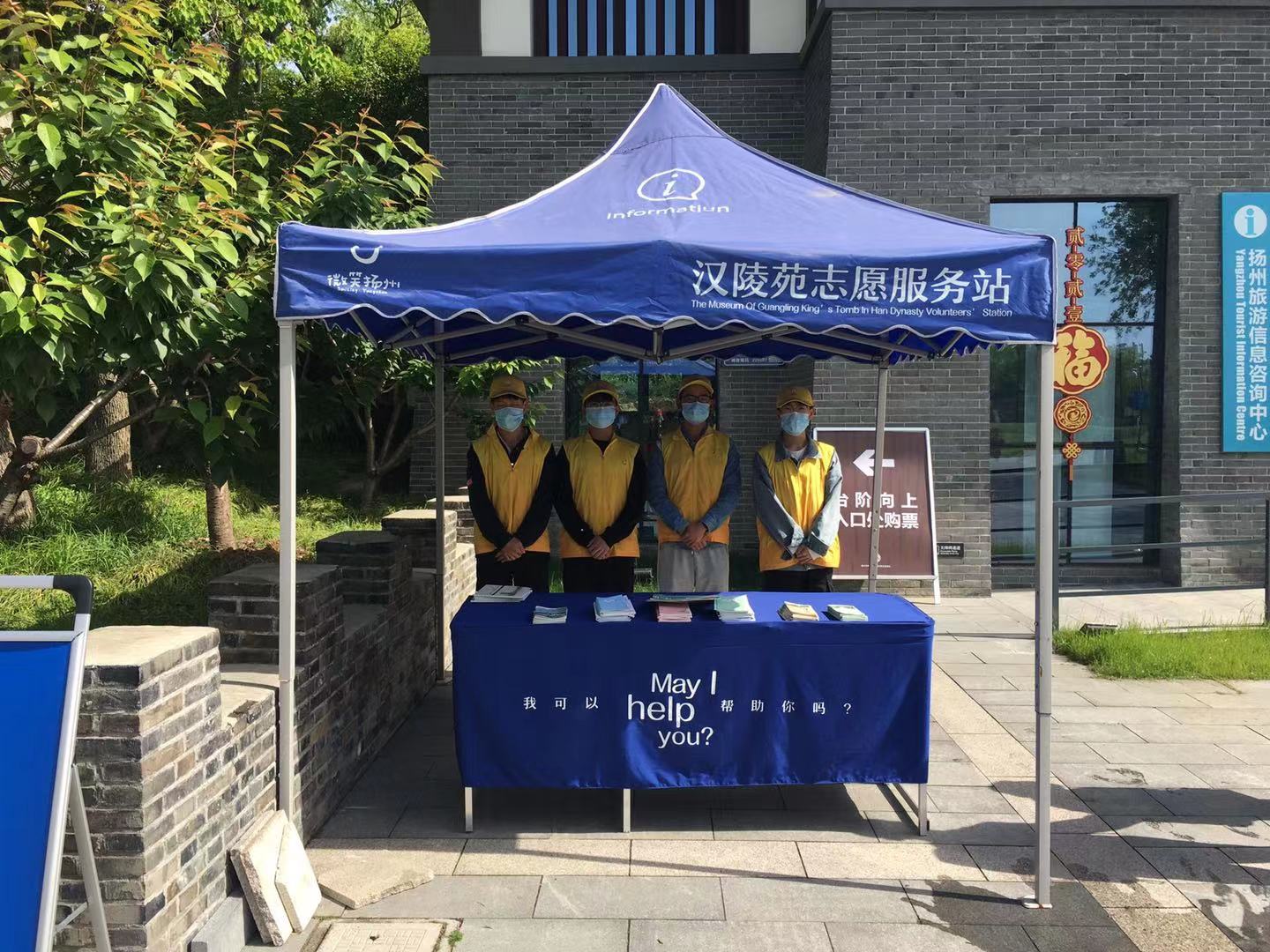 来自上海的一位阿姨因腿脚不便无法直接从汉陵苑门前的大台阶进入景区,志愿者一路陪同护送她们从景区后面绿色通道进入景区,她对汉陵苑的志愿者表示衷心的感谢,她表示不仅扬州是个好地方,你们的志愿服务更是精神面貌好、服务态度好、文明礼仪好。