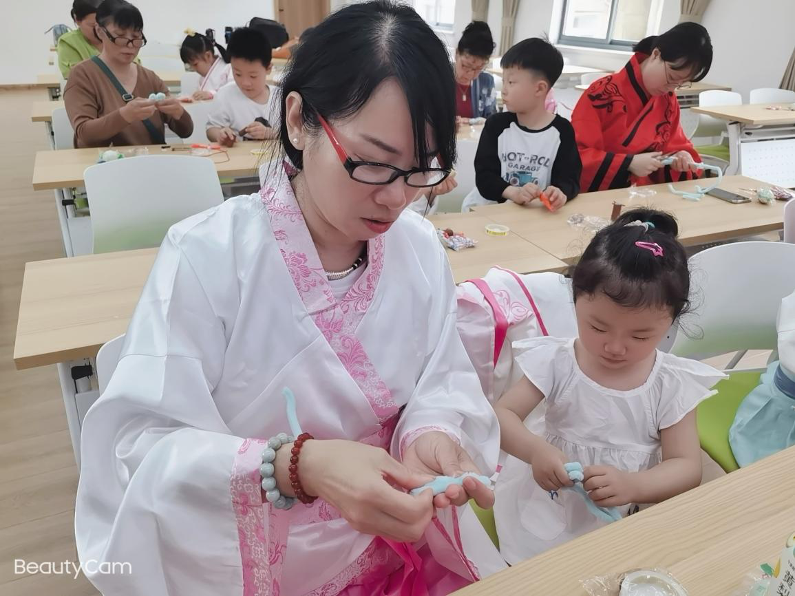 绒花谐音荣华,象征一生荣华富贵。民间在婚嫁喜事、春节、端午、中秋等节日都有用绒花做装饰的习俗,借以祈福、辟邪。活动开始后,老师对绒花的历史,制作流程和主要用途进行了详细地介绍。现场在老师的指导下,大家开始制作花瓣,经过大家的努力,绒花终于初见雏形。随后在老师的指导下,大家学习中国传统端午节文化风俗,编织鸭蛋网兜。在体验传统文化魅力的同时,还共同度过了难忘的亲子时光。
