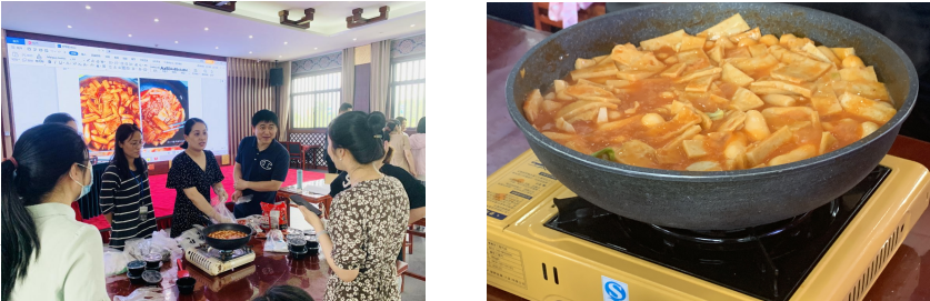崔老师带领学员们亲手体验制作韩国美食:炒年糕、紫菜包饭、部队火锅