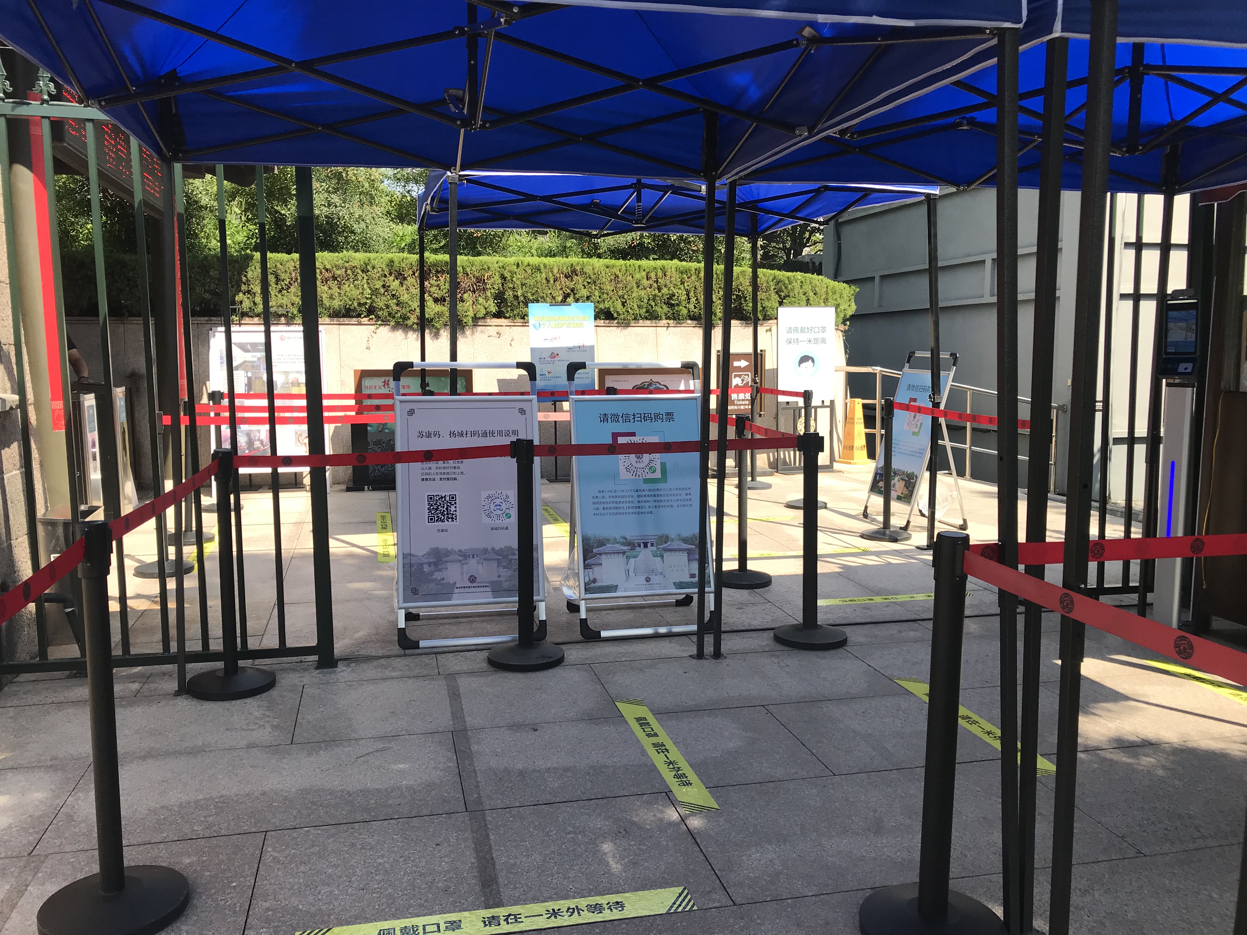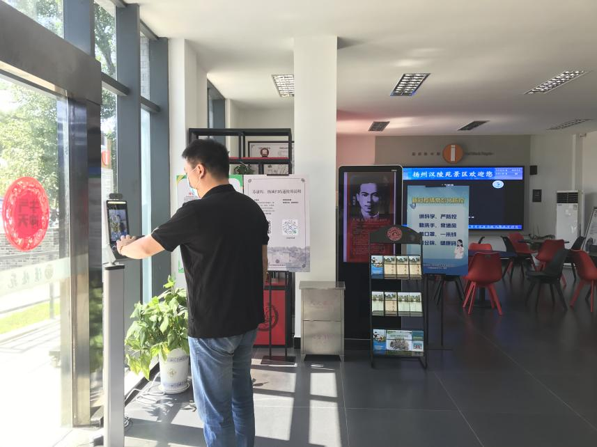 在各入口处加装扫码测温一体机,所有进入人员需佩戴口罩扫描身份证、“扬城扫码通”或“苏康码”,各项数据合格后进入。