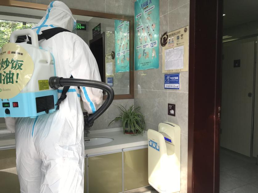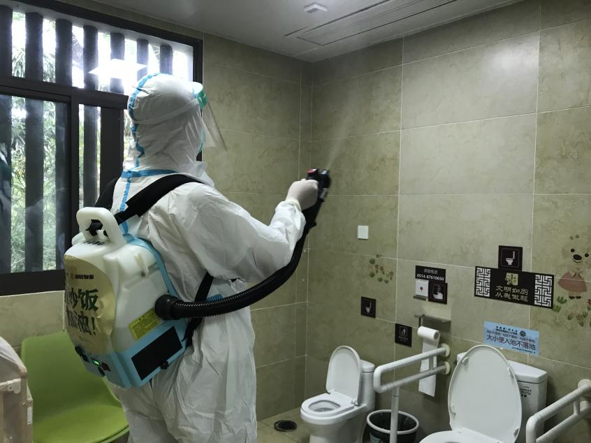 对垃圾桶、员工食堂、厕所等多地进行消毒