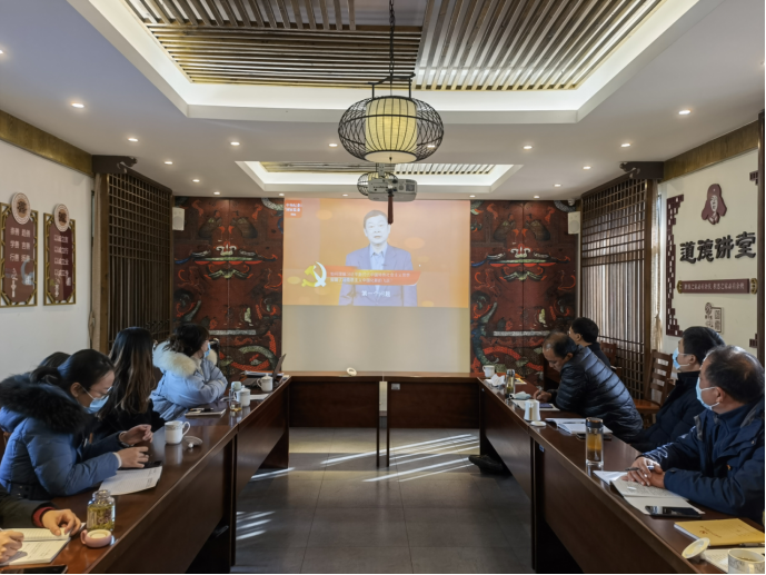 与会人员集中观看中央纪委国家监委网站推出的《学习领会党的十九届六中全会精神公开课》,深入学习十九届六中全会精神,领会以伟大自我革命引领伟大社会革命的战略思想。
