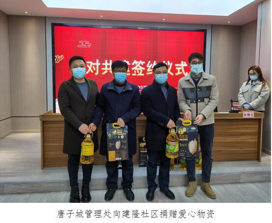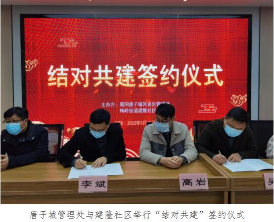 1月19日上午,唐子城风景区管理处党支部书记李斌一行来到梅岭街道建隆社区,与建隆社区开展共建签约活动。