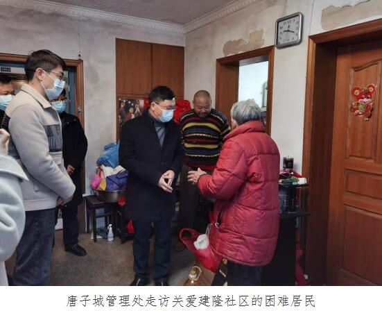 1月19日值2022年新春佳节到来之际,为助力扶贫攻坚,大力营造欢乐喜庆、文明祥和、温馨和谐的节日氛围。唐子城管理处向建隆社区捐赠爱心物资并走访关爱困难居民。