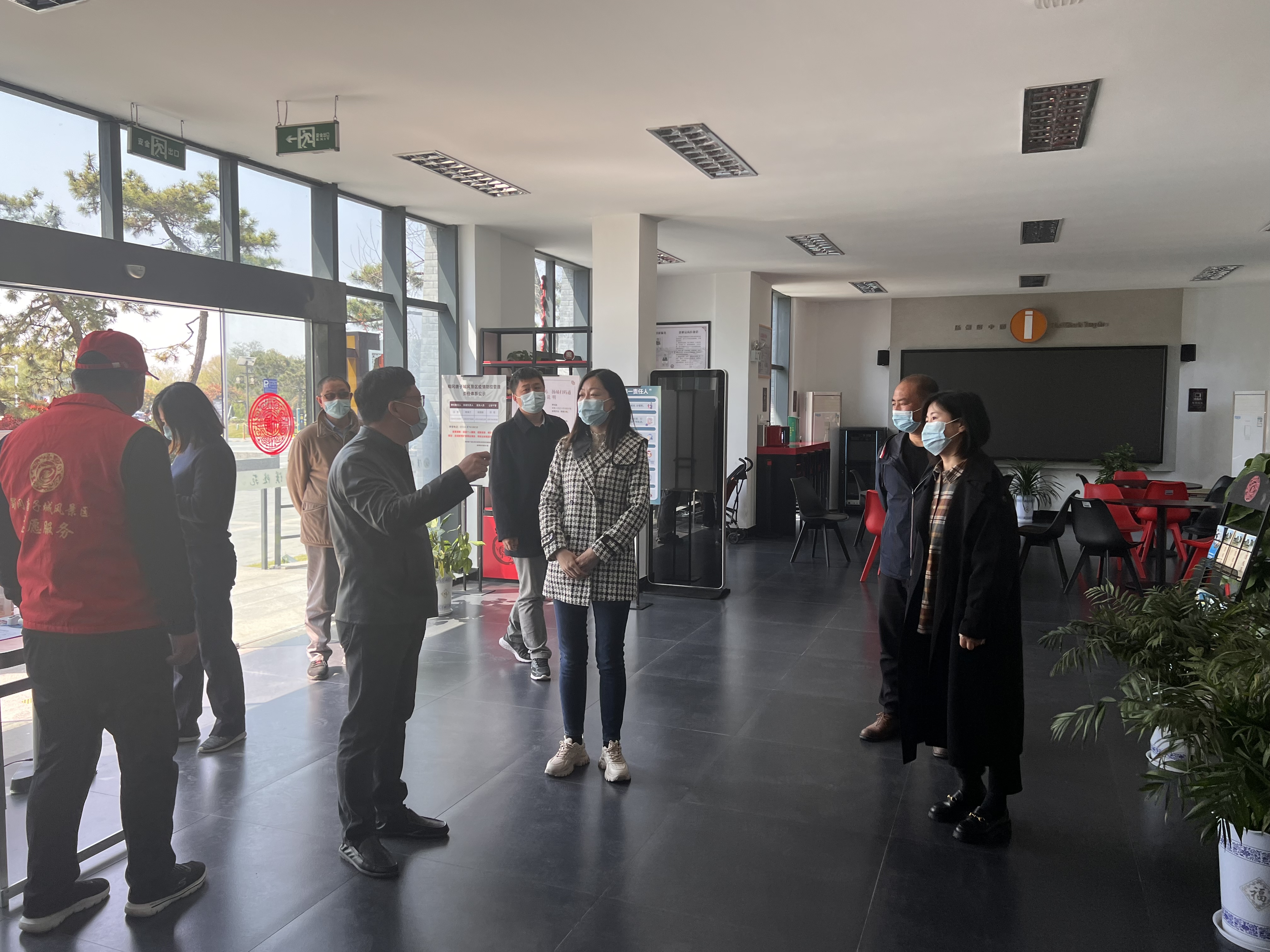 蜀冈唐子城风景区管理处主任李斌向检查组一行详细介绍了唐子城景区在闭馆期间的安保措施和内部疫情防控工作,特别是省第十安全督导组对我处开展专项检查所提出意见的整改落实情况,以及工作人员下沉社区积极开展疫情防控志愿服务的情况。