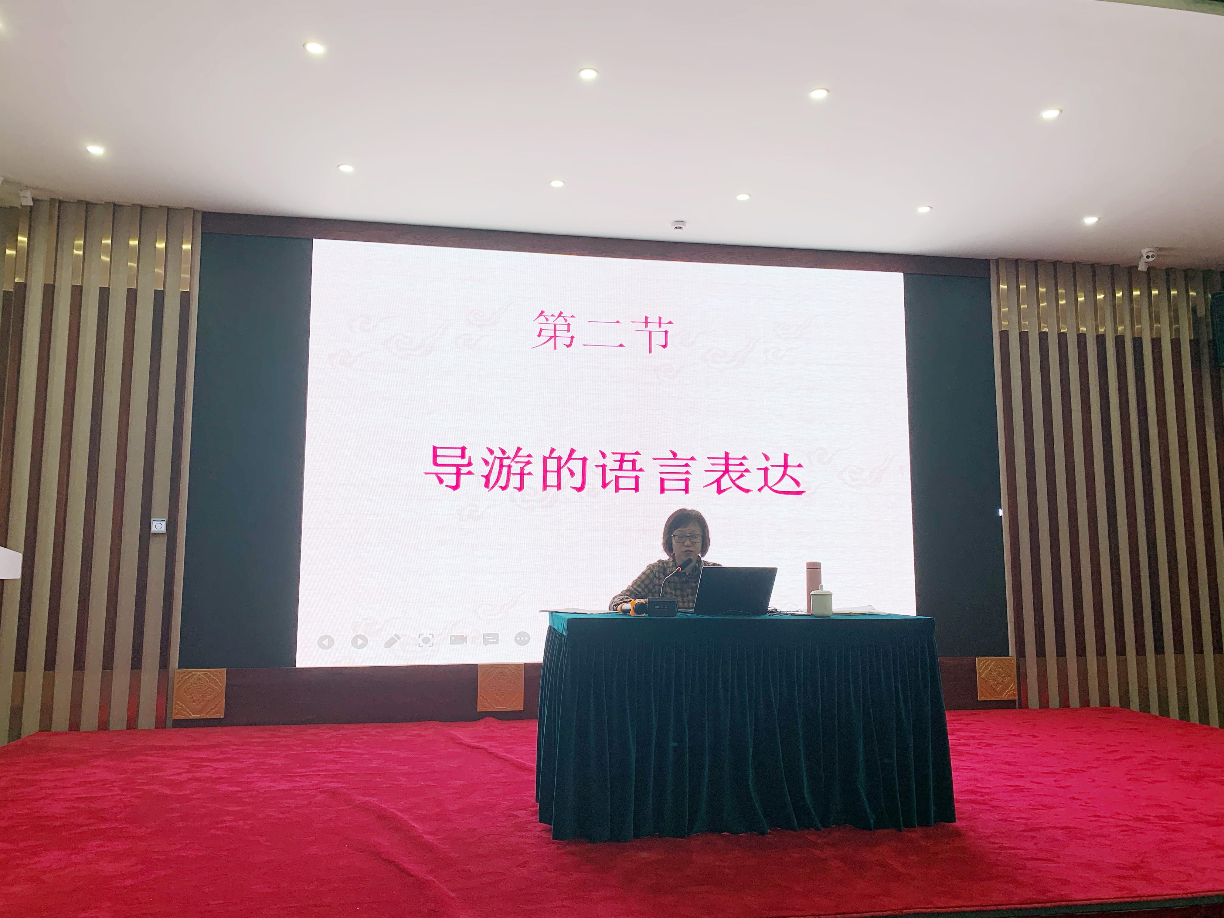 培训中,张开美老师围绕讲解词的撰写、讲解员的语言表达等方面作出详细地授课,并结合讲解词范例、讲解视频范例,清晰明了地为景区讲解员作出详实地解答,为大家在实际讲解服务中出现的错误与不当之处进行指导。