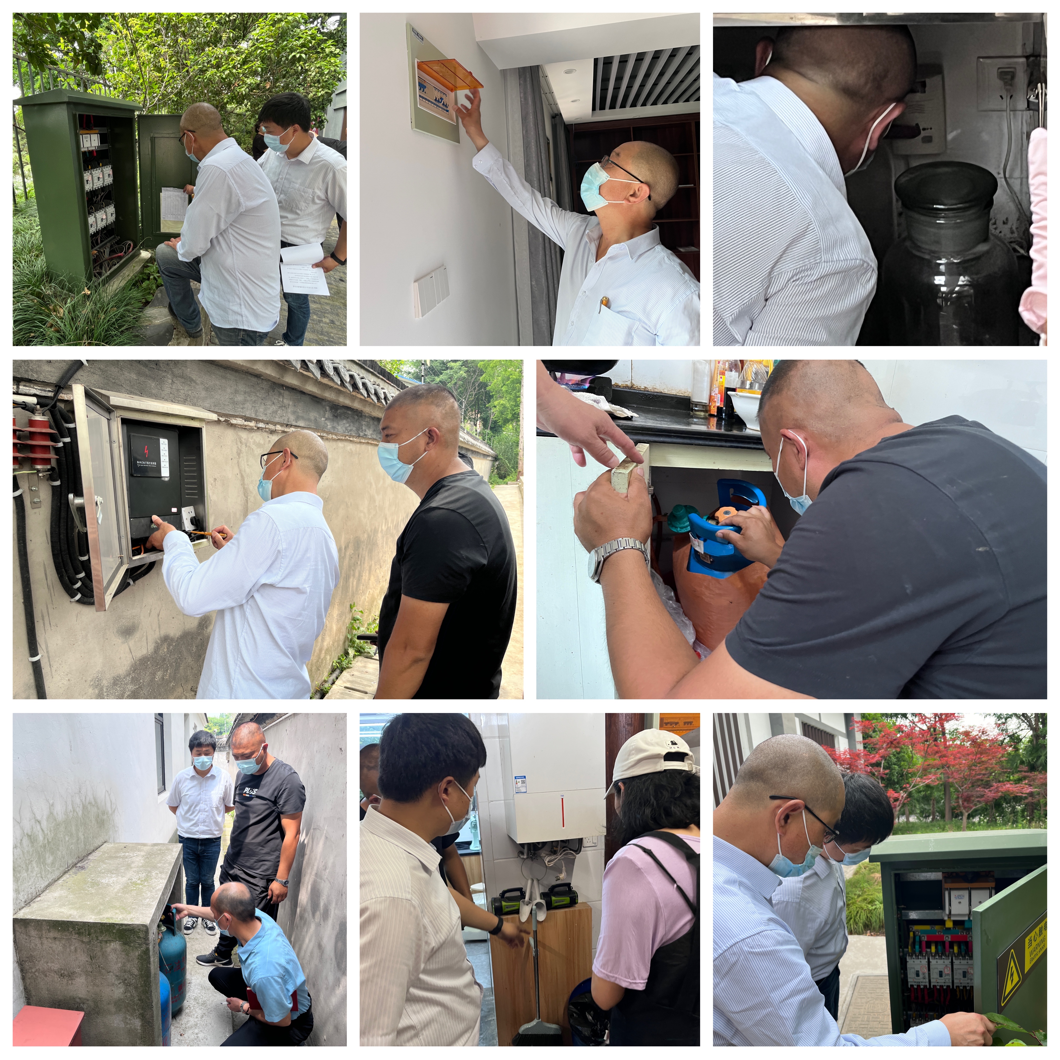 其次,重点排查所有煤气管道老化、接头处松动等问题,查看煤气罐有效期;安排人员准备对电风扇螺丝检查并打扫,清理线路及空调过滤网,确保景区高温天气的煤气、用电安全。