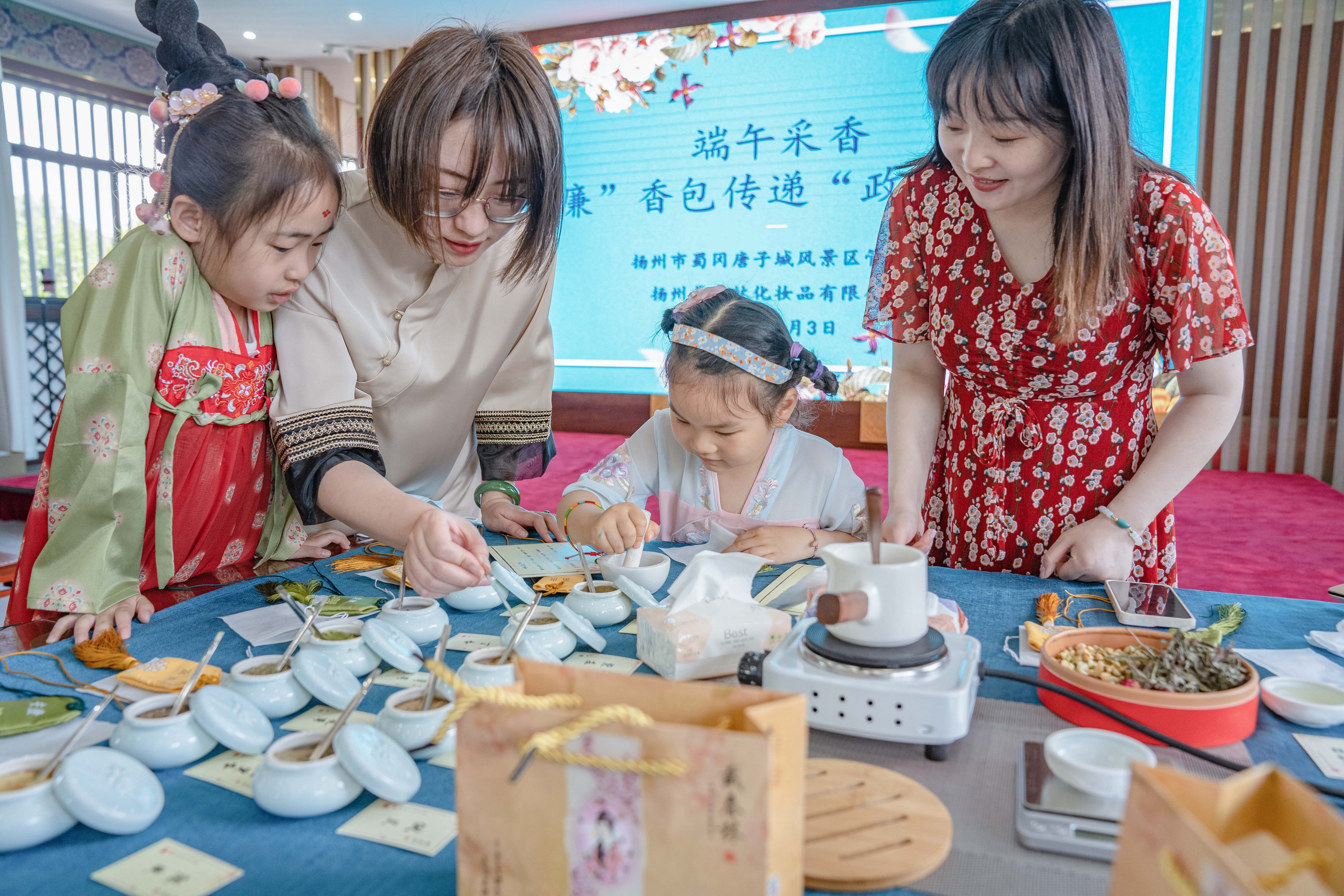 为传承和弘扬中华优秀传统文化,营造崇廉尚廉守廉的清廉文化氛围,端午节当日,唐子城风景区管理处联合扬州戴春林化妆品有限公司在唐城遗址博物馆开展“端午采香”端午节特色研学活动。本次活动旨在鼓励孩子崇廉敬洁,接受廉政文化的熏陶,在家庭、社会中发挥促廉助廉的作用,使社会不断形成廉洁正气的好风尚,推动廉洁家庭、文明家庭的创建。