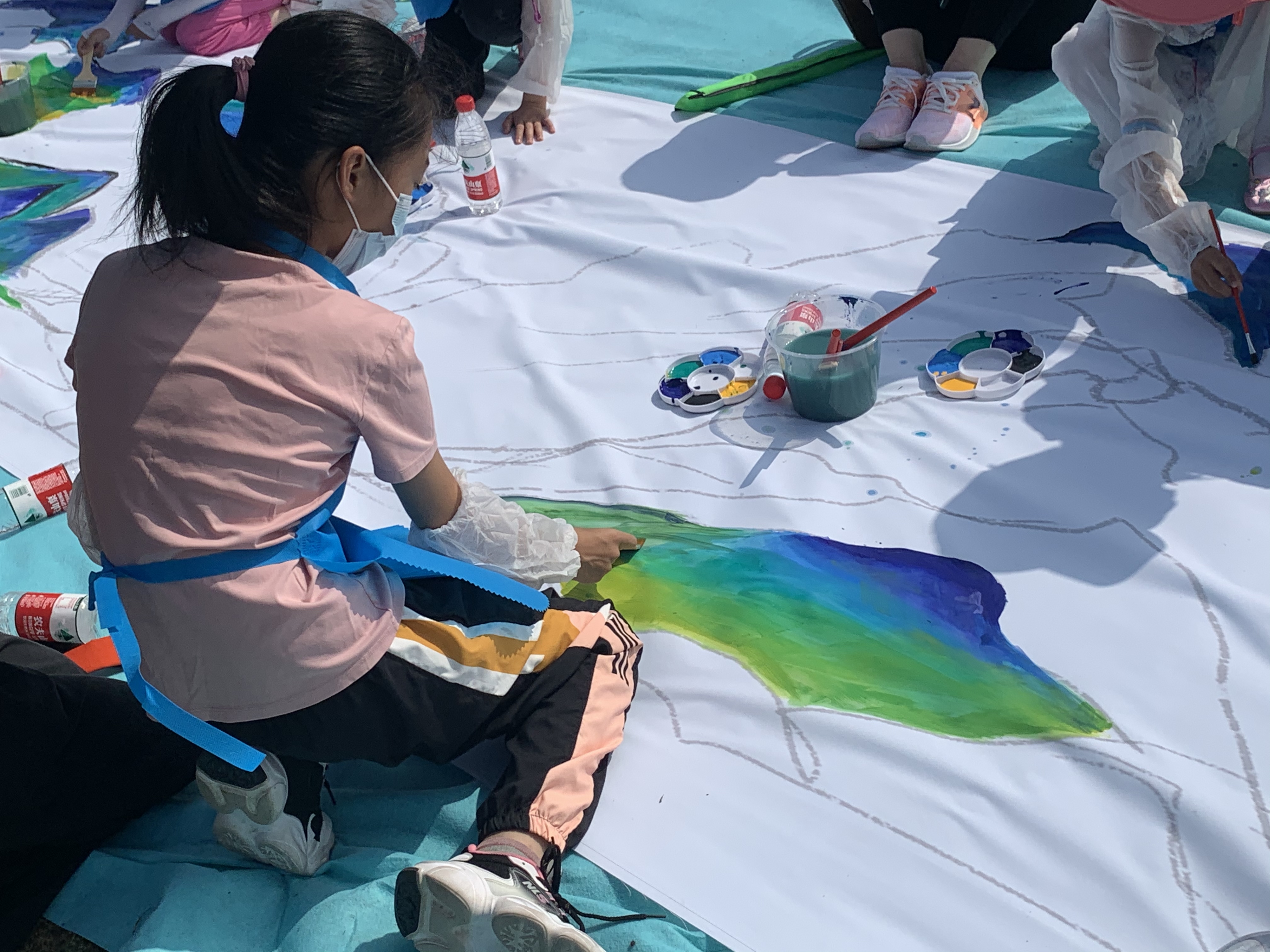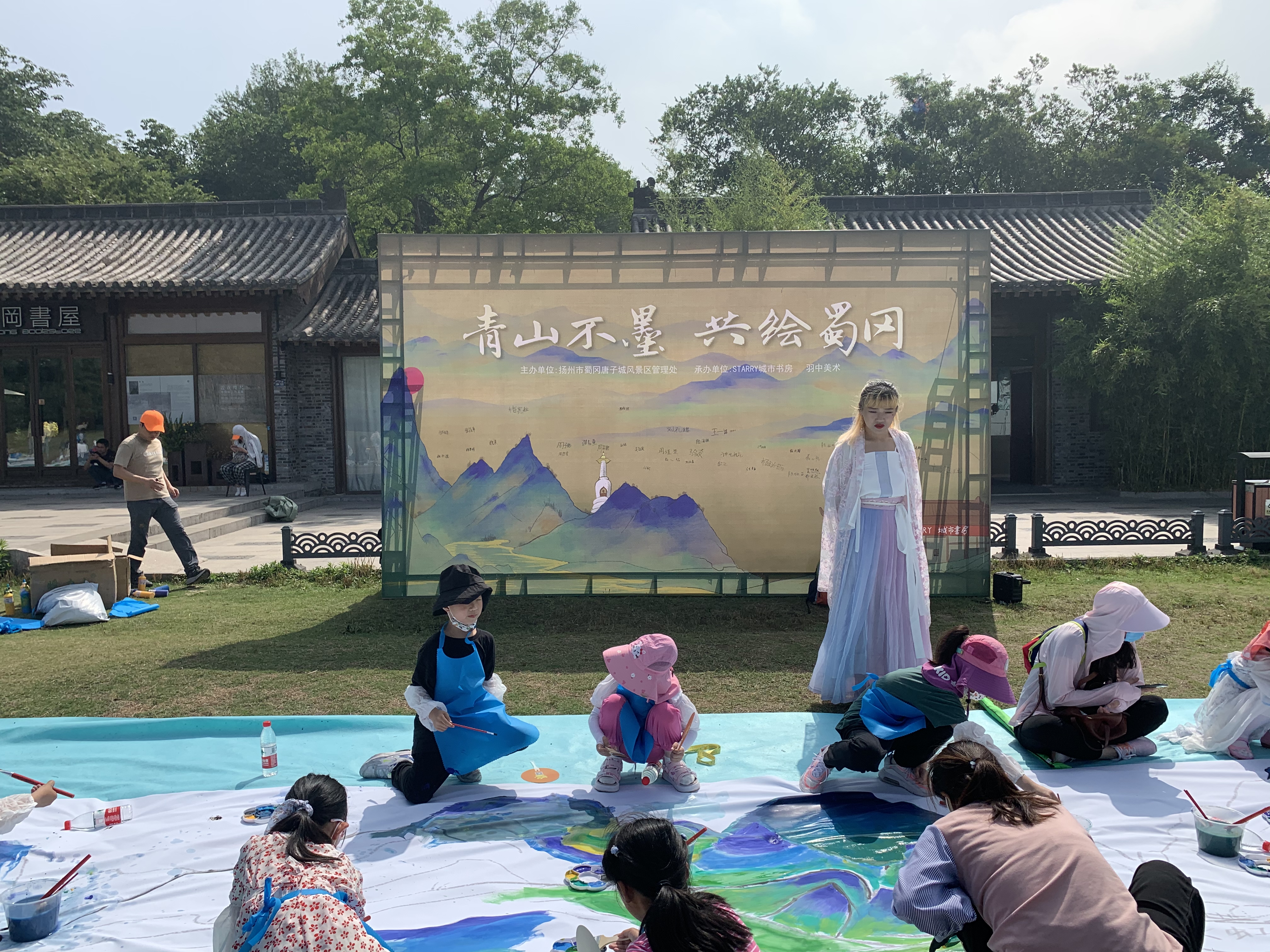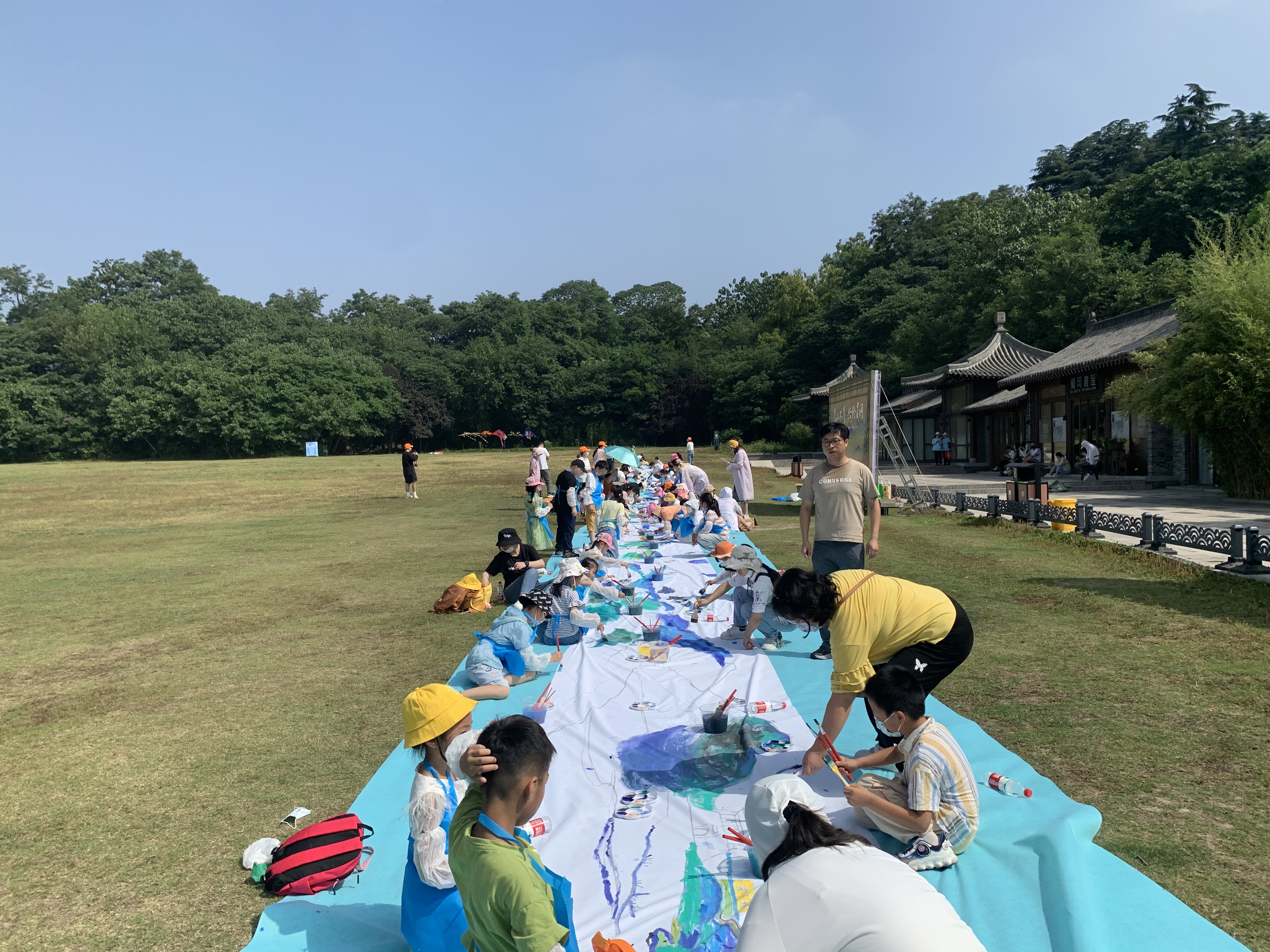 端午节当日,阳光明媚,微风拂面。百名小朋友汇聚风筝广场,共绘《运河蜀冈江山图》。以传承运河文化为目的,以中国十大传世名画《千里江山图》为基础,以扬州运河文化、人文景点、自然风光、古代建筑、端午传统文化为创作元素,绘制扬州首幅运河蜀冈江山图,传承民族文化。