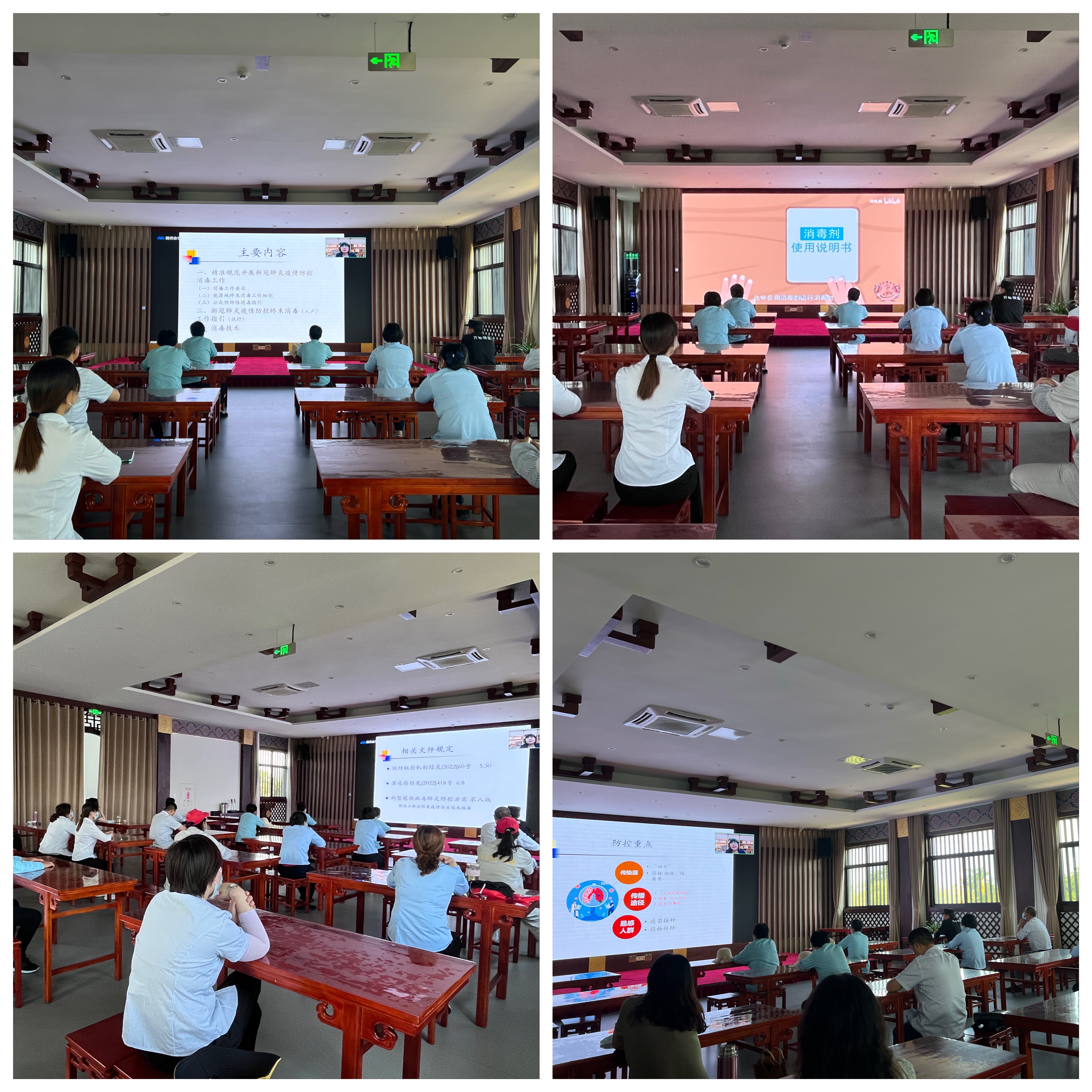 为进一步贯彻落实新冠肺炎疫情防控工作,规范清洁、消毒工作操作流程,唐子城管理处组织预防性消毒人员观看学习《新冠肺炎疫情防控精准规范消毒视频培训》及《疫情常态化下的消毒指引》,视频从新冠肺炎预防性消毒的原则、常用消毒剂的选择、各类消毒对象的消毒方法等内容详细讲解了新冠肺炎防控工作和消毒的基础知识,强化了职工对新冠病毒的认知,为唐子城管理处进一步实施卫生消毒提供了工作指南。