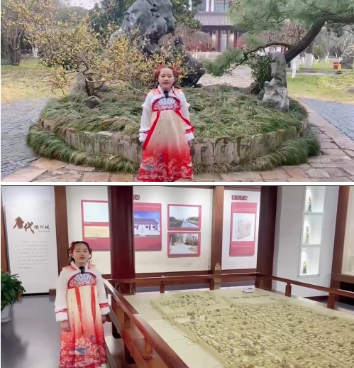 唐子城景区“汉唐小博士”史羽昕为大家讲述了唐代扬州城恢弘大气的建筑和古色古香的风光,向我们描绘了因运河而兴盛的唐代扬州城,再现陆上丝绸之路和海上丝绸之路的繁华盛景。