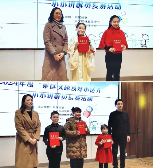 2月20日,在景区妇联、景区园林发展中心、景区融媒体中心决定联合举办2024 年度“景区文旅友好小达人”-小小讲解员选拔活动中,唐子城景区的“汉唐小博士”们表现优异,展现风采,其中史羽昕获得二等奖,马景妍获得三等奖。