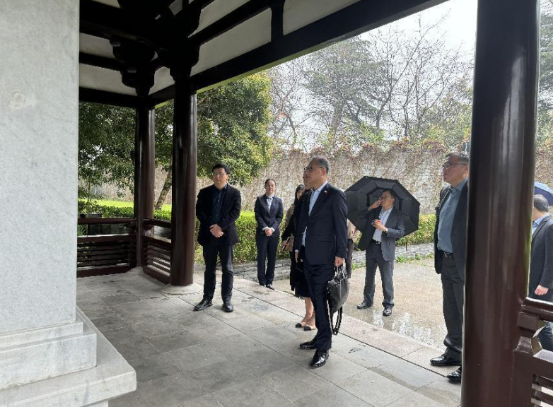 4月2日下午,韩国驻沪总领事金英俊一行参访扬州崔致远纪念馆。扬州市人大常委会副主任陈锴竑,扬州市蜀冈唐子城风景区管理处主任、崔致远纪念馆馆长李斌陪同参观。