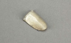 白玉,浅刻蝉翼,头部浅刻两道折纹,蝉背退刀三角纹。 【详情】