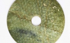 青玉,由内向外有四圈刻纹,从内到外,依次为绳纹、榖纹、绳纹、蟠螭纹。 【详情】
