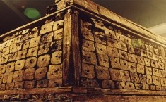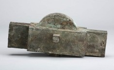 铜轴一边为方头,一边为圆头,铜轮上刷有褐色油漆,此铜轮是镶嵌在枕木上,推动棺柩使用的物件,保存较好。 【详情】